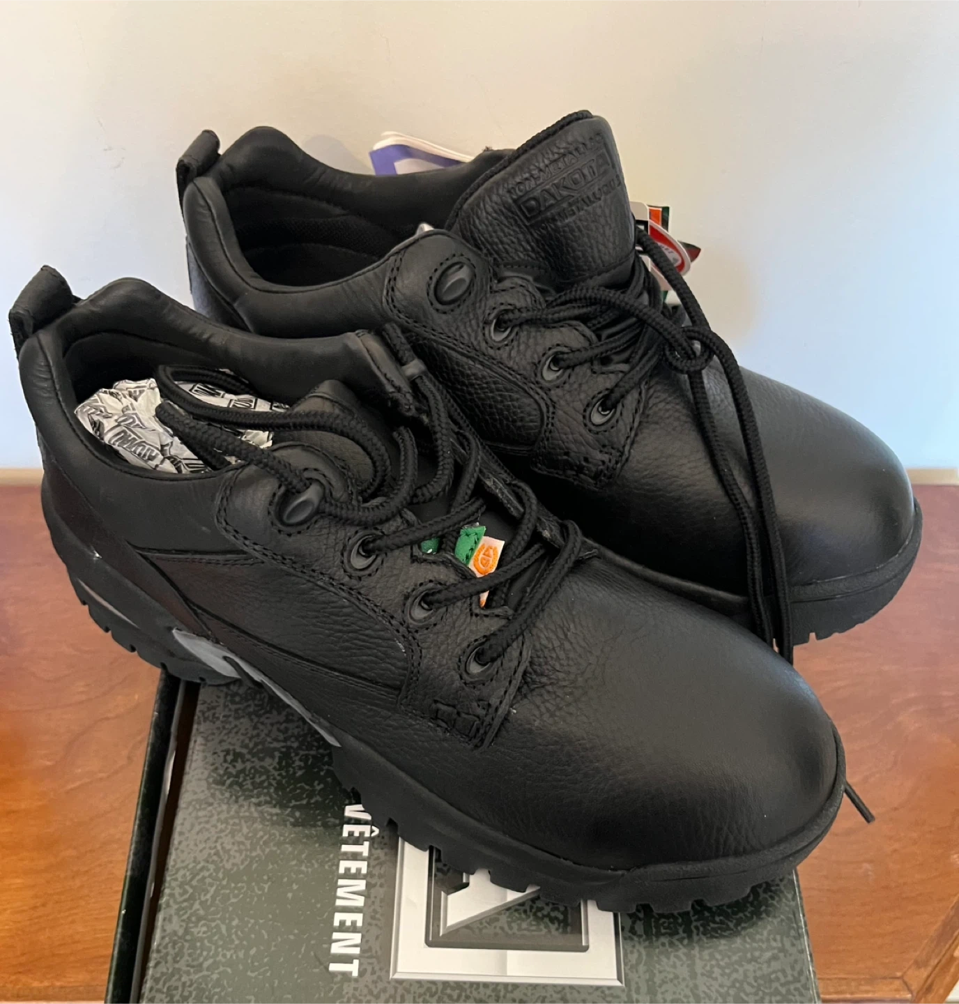 Brand new pair of Dakota composite toe work shoes in black. Non-metallic, non-magnetic, non-corrosive toe. Heat resistant and CSA Grade 1 approved! Great for job sites.