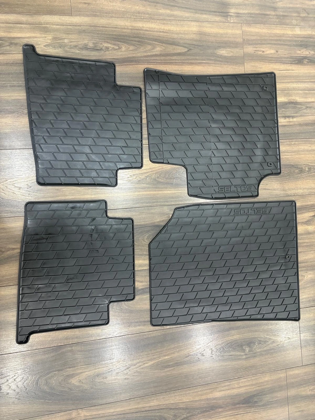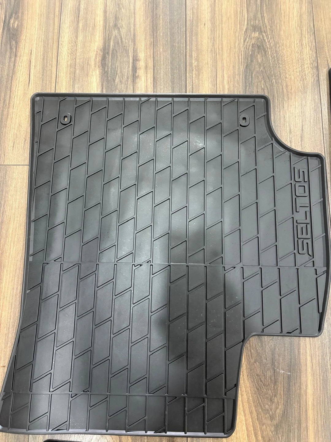 Selling a full set of black rubber floor mats for a Kia Seltos. These are in great shape and will keep your car's interior clean and protected from the elements