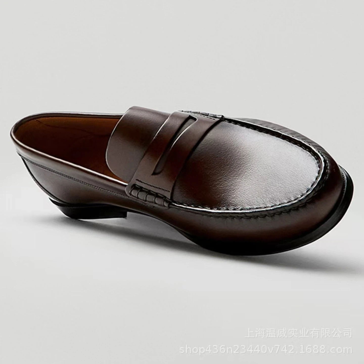 Victorroad Men's Brown calf Leather Penny Loafers Size 44