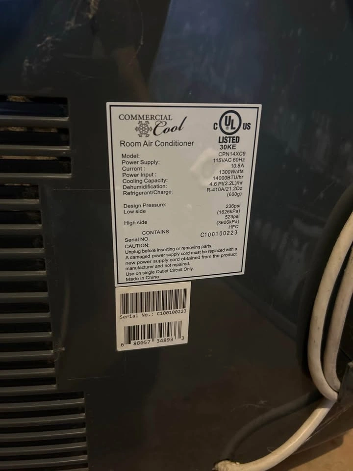Selling my Commercial Cool (Haier) 14,000 BTU portable air conditioner – model CPN14XC9. Powerful cooling for larger spaces up to 500–700 sq ft (living room, master bedroom, basement, etc.).