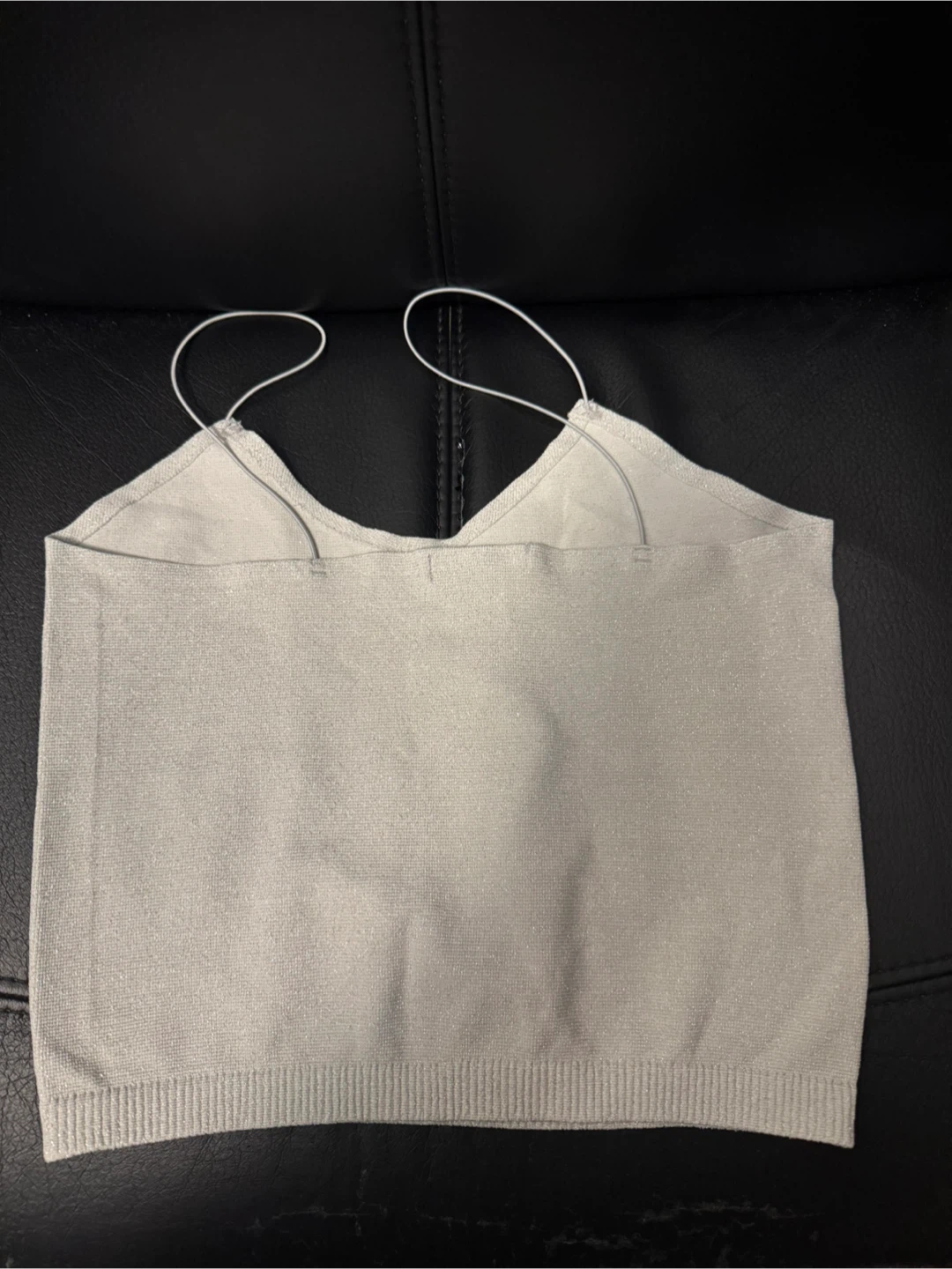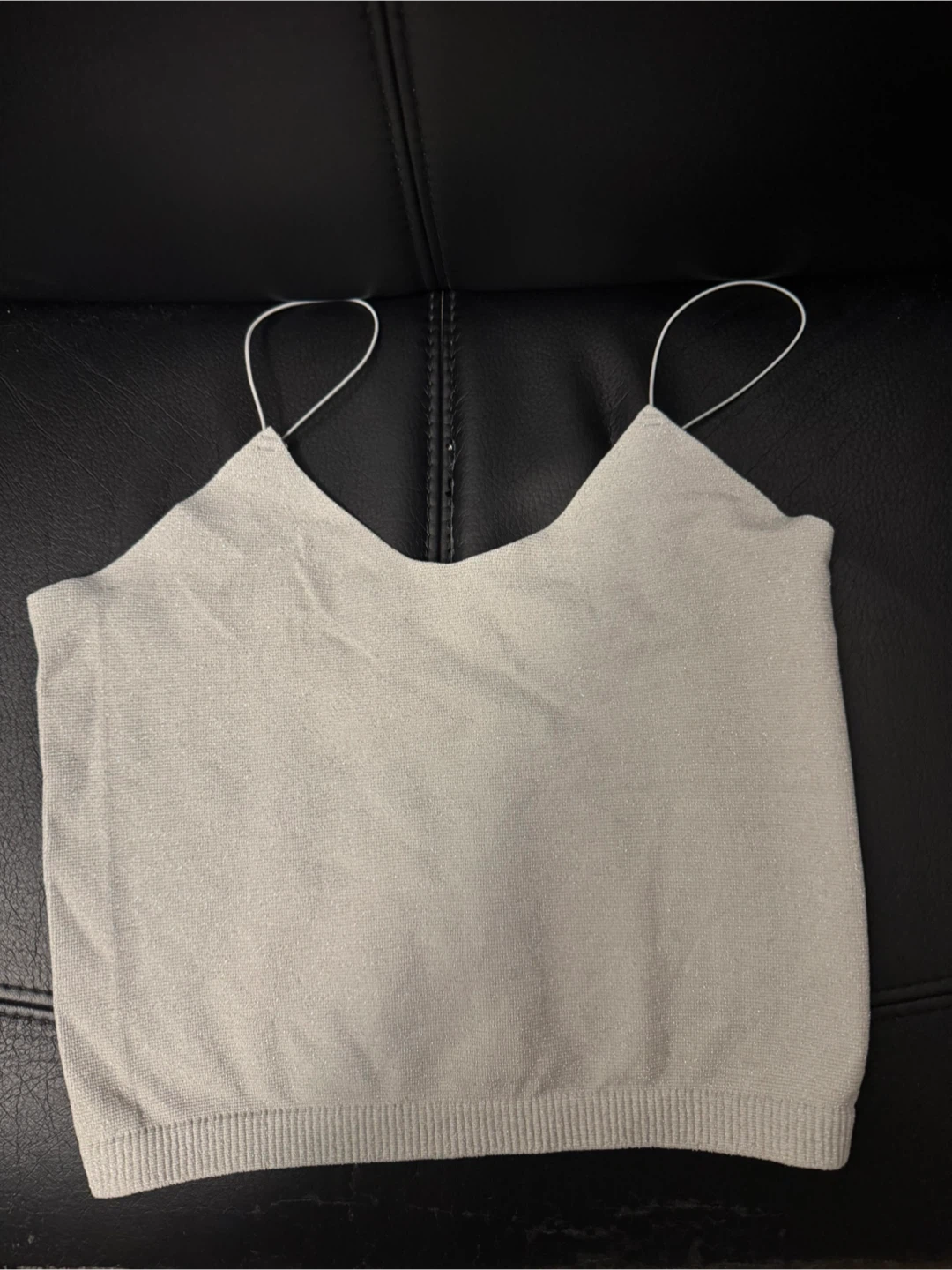 Selling a cute silver cami top! It's in great condition and ready for a new home. The material has a subtle shimmer, making it perfect for dressing up or down. It's a lightweight knit material. Never worn!