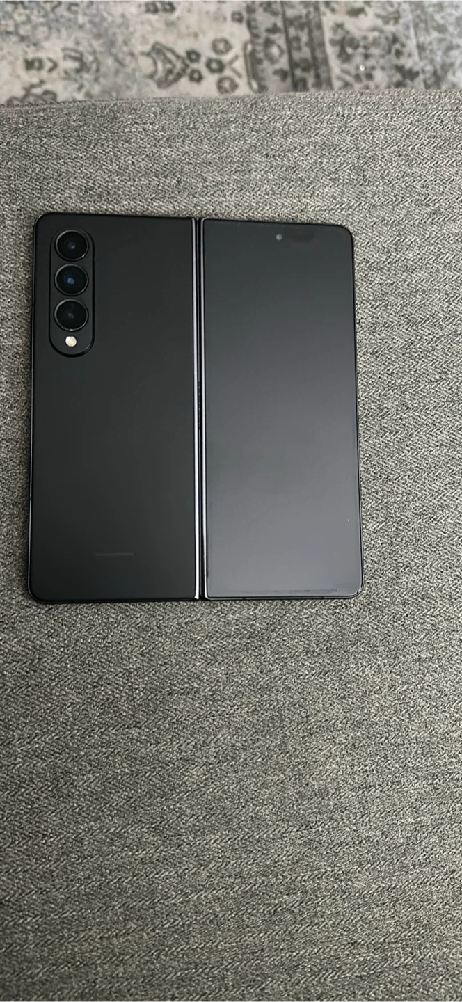 Samsung Galaxy Z Fold 4 smartphone in black. This device offers a foldable display for a unique mobile experience. It's a high-end phone with advanced features.