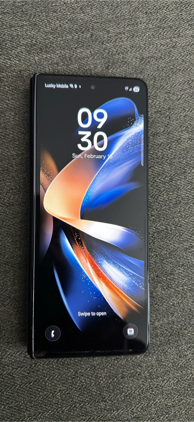 Samsung Galaxy Z Fold 4 smartphone in black. This device offers a foldable display for a unique mobile experience. It's a high-end phone with advanced features.