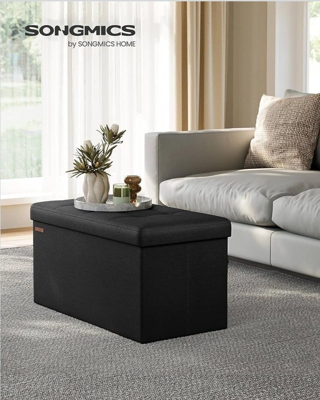 SONGMICS Ottoman with Storage 38 x 76 x 38 cm - Black