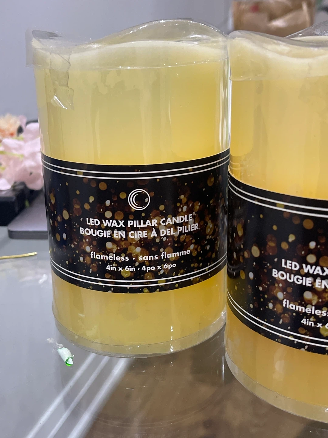 Flameless LED is wax textured not plastic candles. Feels like real candle wax to the touch. These are 4in x 6in candles. Adds a cozy glow without the flame!