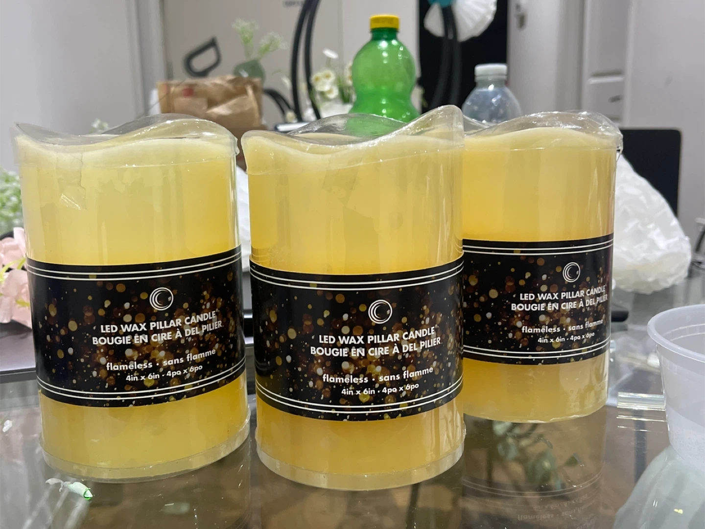 Flameless LED is wax textured not plastic candles. Feels like real candle wax to the touch. These are 4in x 6in candles. Adds a cozy glow without the flame!