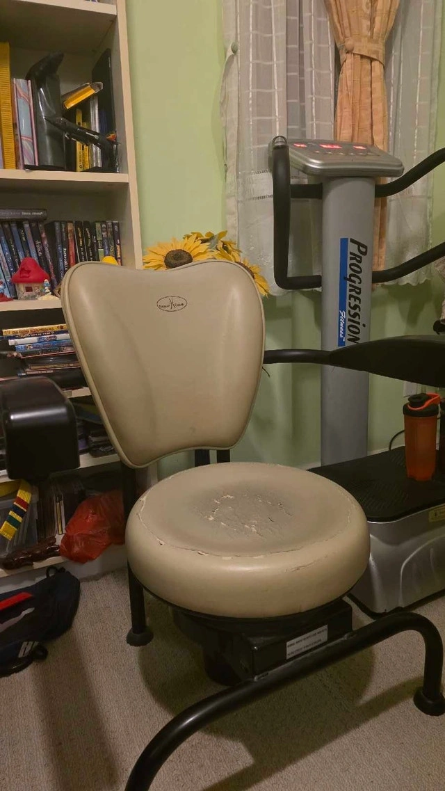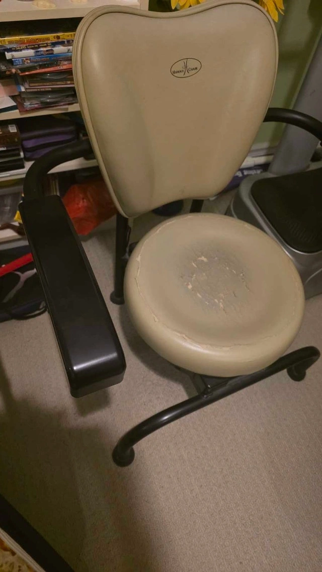 Get ready to hula your way to fitness with this rare Hawaii Chair! This unique exercise chair features a swivelling seat and back support, designed to help you work those core muscles while you sit. It is in great used condition, save for some wear on the seat. I used it to work the core while I was working on my laptop. Now I'm ready to pass it on. I ordered it brand new and cared for it well. If you're ready to lose some weight and tighten up your waist, let this awesome machine help you!