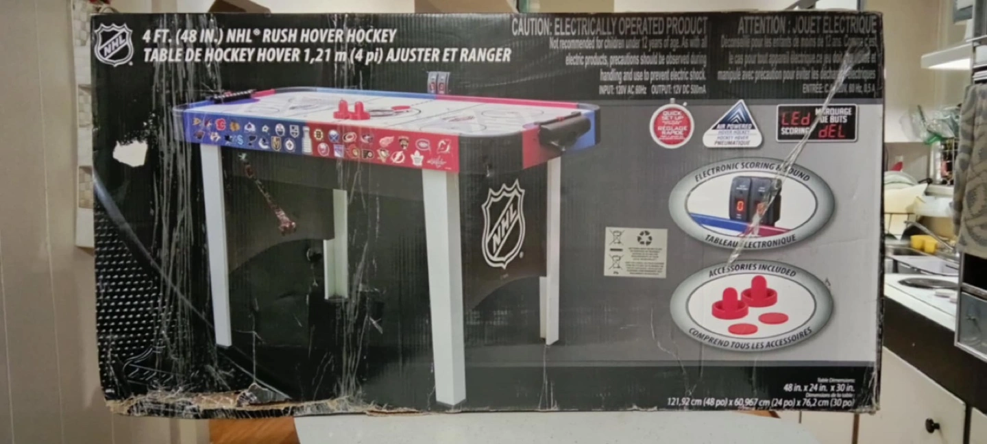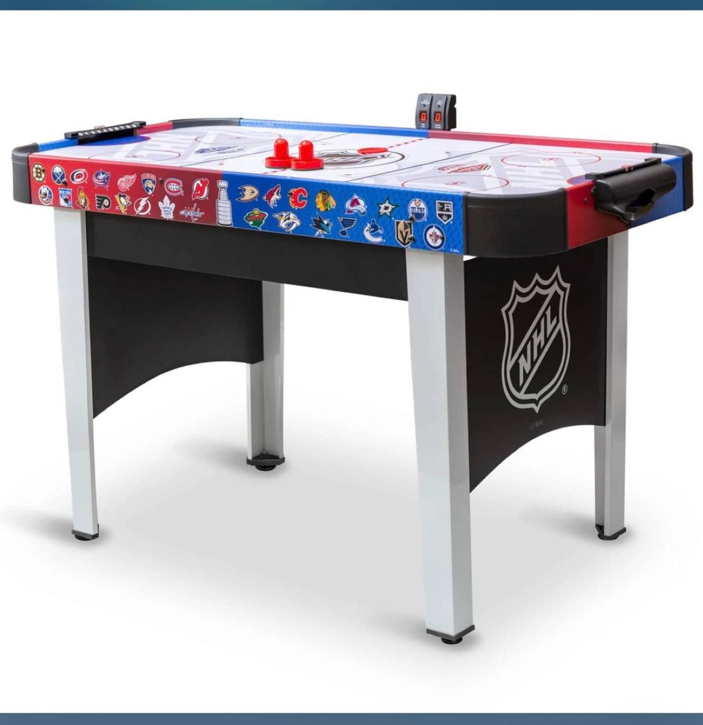 4ft NHL branded hover hockey table. Electronic scoring. Includes accessories. Great for game family nights, and gatherings.