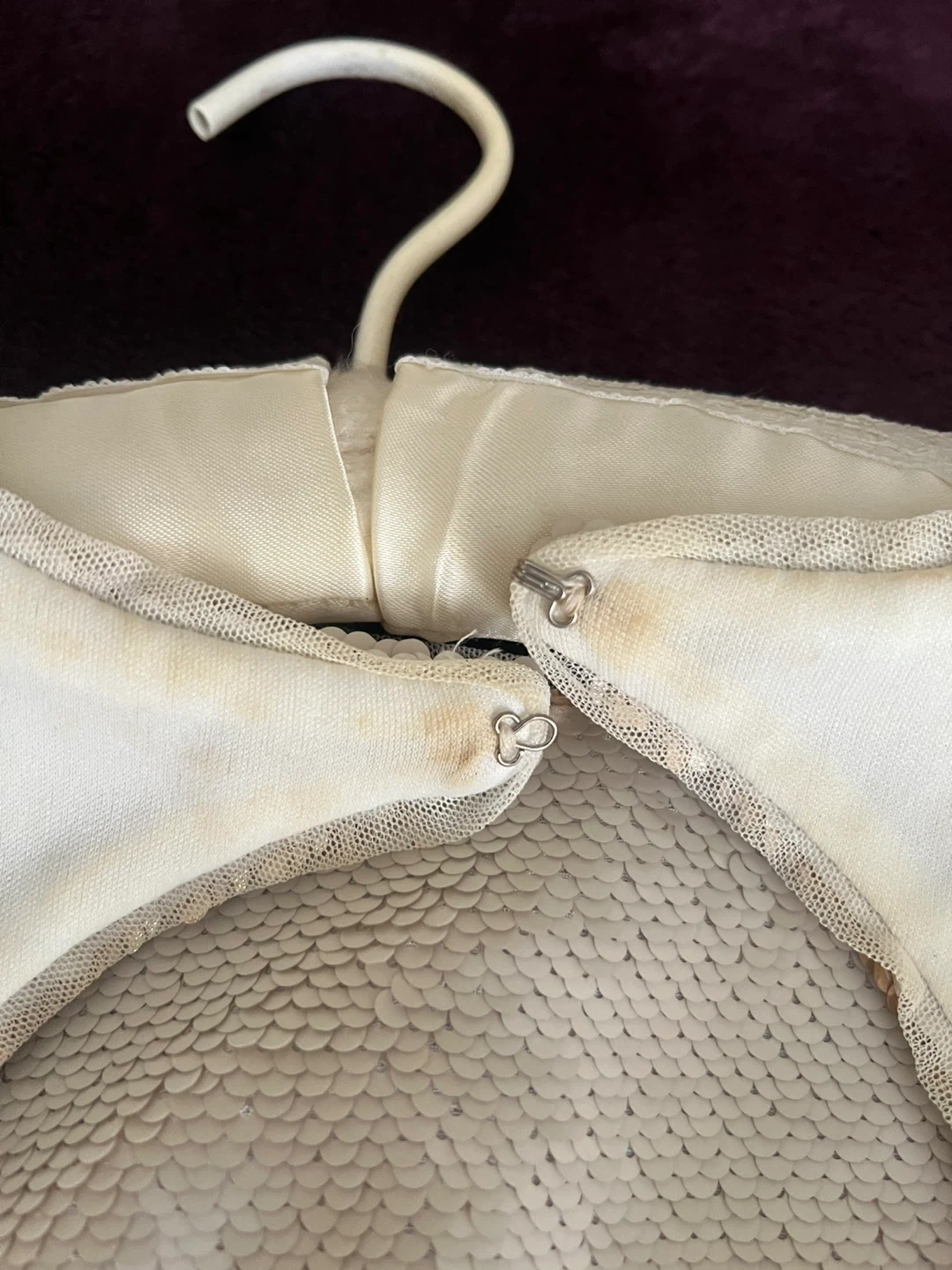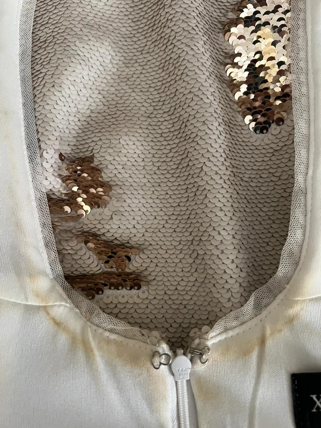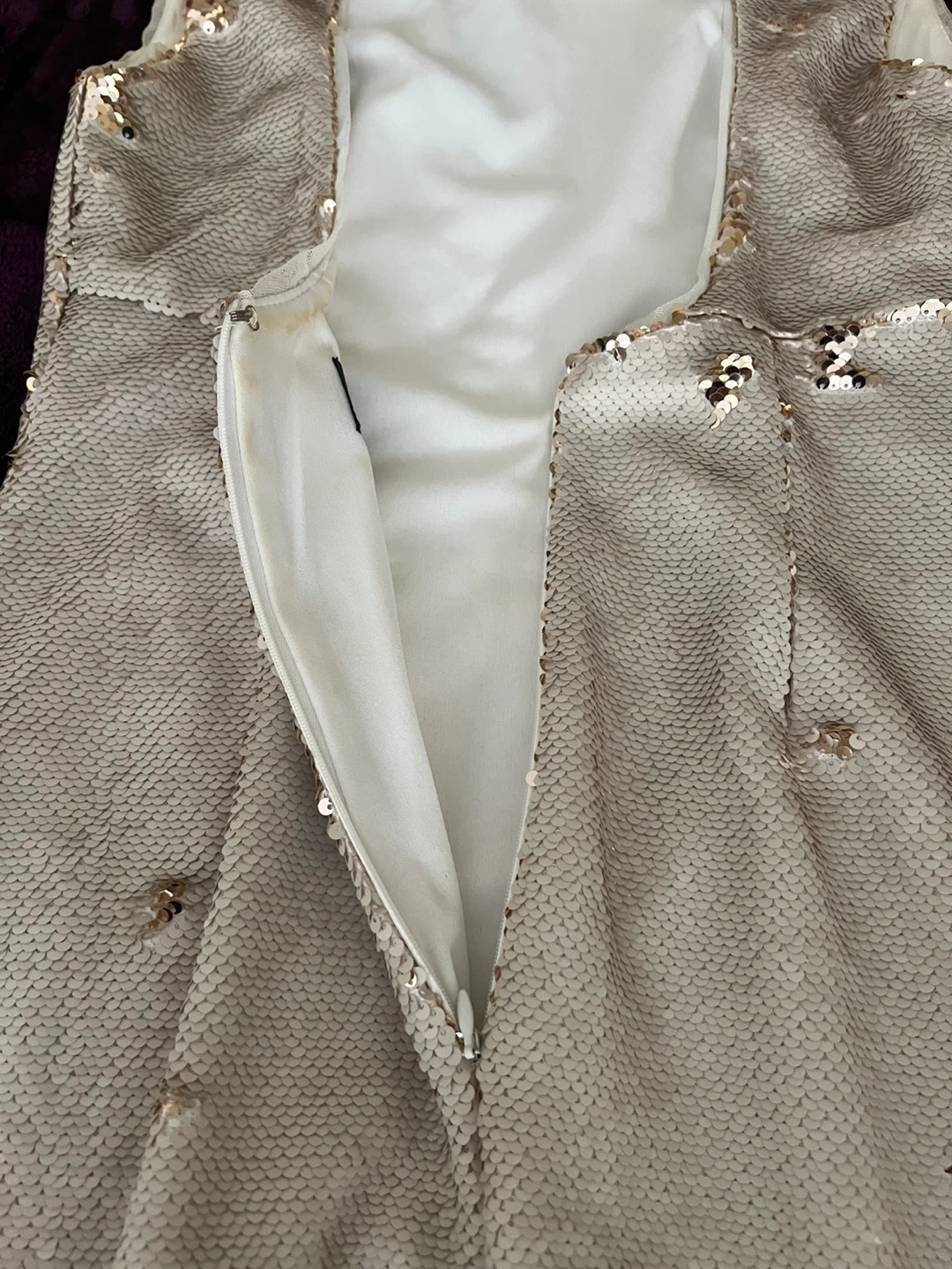 There are some stains on the inside of the dress.i don’t know how to clean it ,it should wash with hand i think 🤔