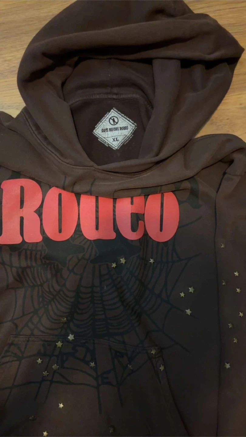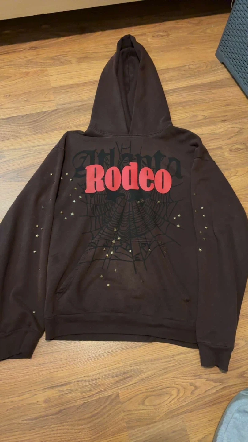 Buy & SellSp5der HoodieSp5der Hoodie$264This is a brown hoodie with a spiderweb graphic and 'Rodeo' text. It's a size XL. The sleeves have star details. It fits like size LWHERE TO MEETCheck LocationView MapSELLEREthanLakeview150 reviews0 chats·0 favorites·9 viewsSEND CHAT TO SELLERHi Ethan! I’m interested in your listing.Hi Ethan! I’m interested in your listing.Get the Karrot app to chatSign In to chat