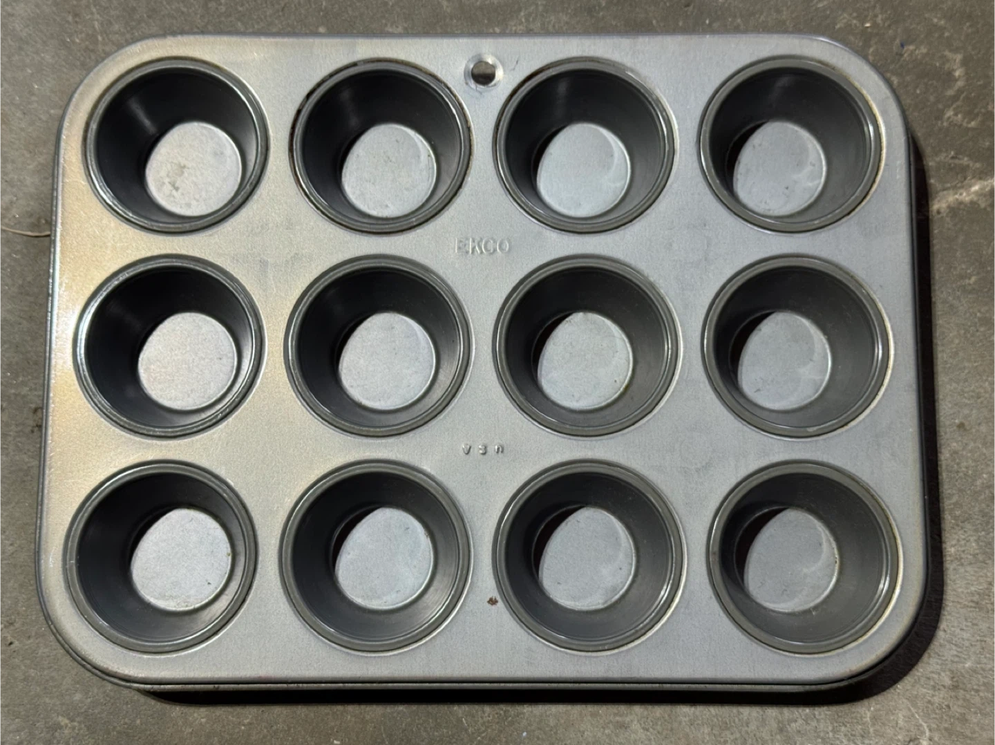 This is an EKCO 12-cup muffin tin. It's made of metal and is great for baking. It is for tiny cupcakes. Yarn, table runner, scentsy, filing tray. $10 for everything. Located in Penticton
