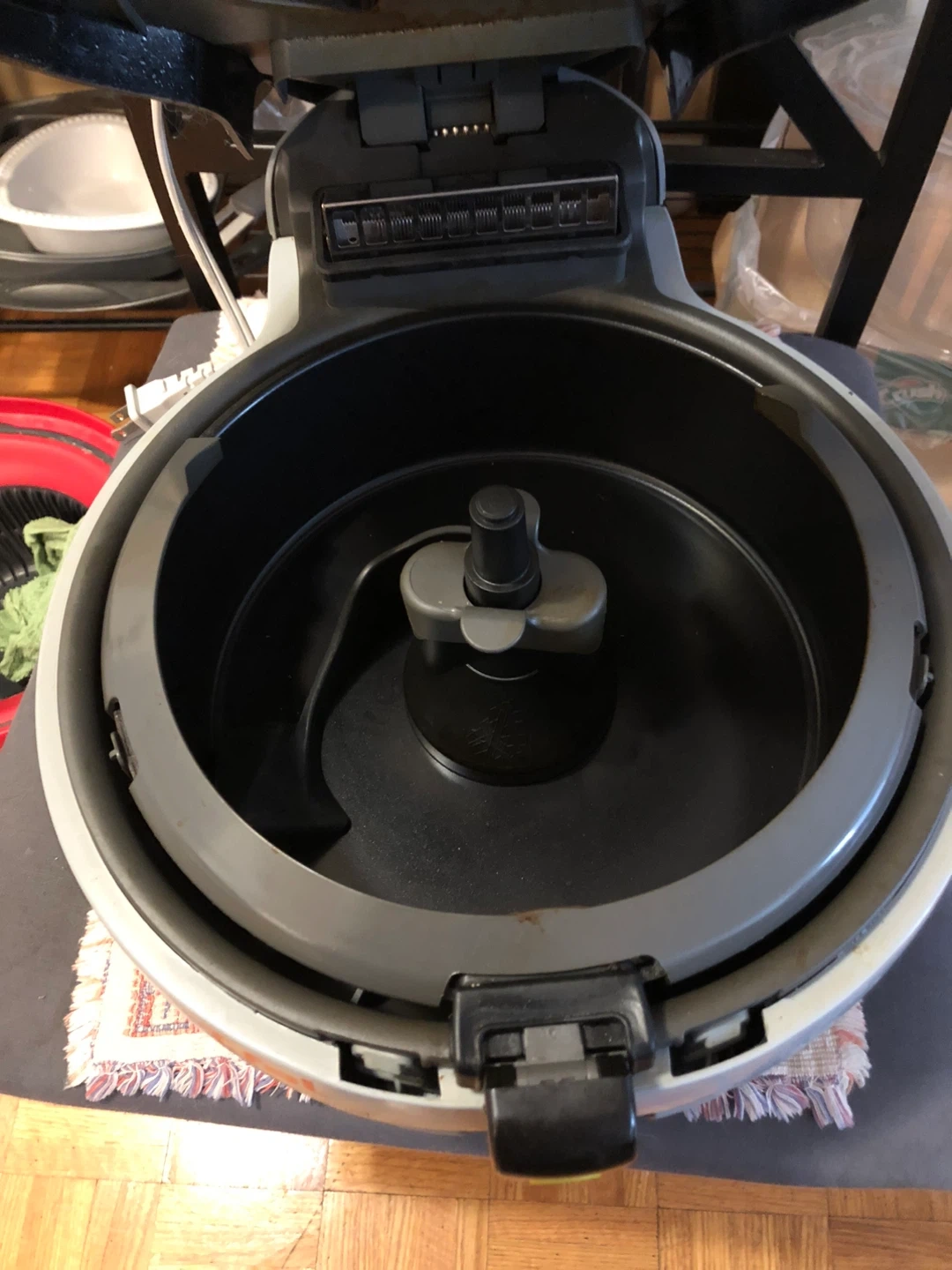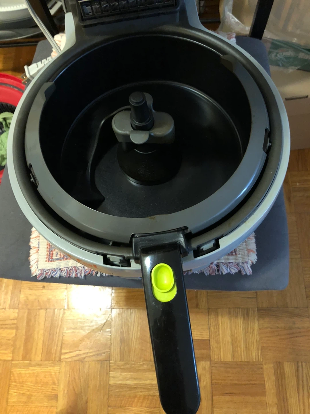 This is an Actifry air fryer. It's designed for convenient cooking. It has various cooking time suggestions for different food types and amounts.