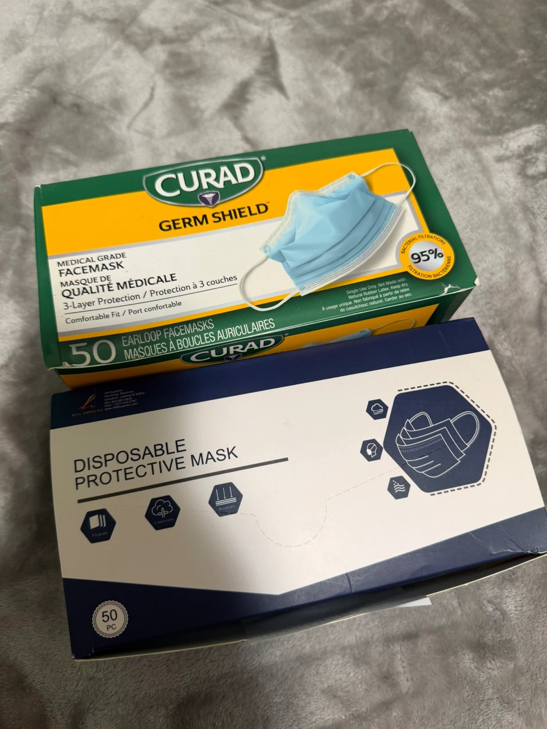 Medical grade earloop facemasks. These are 3-layer protection masks with 95% bacterial filtration. Disposable protective masks for everyday use.
