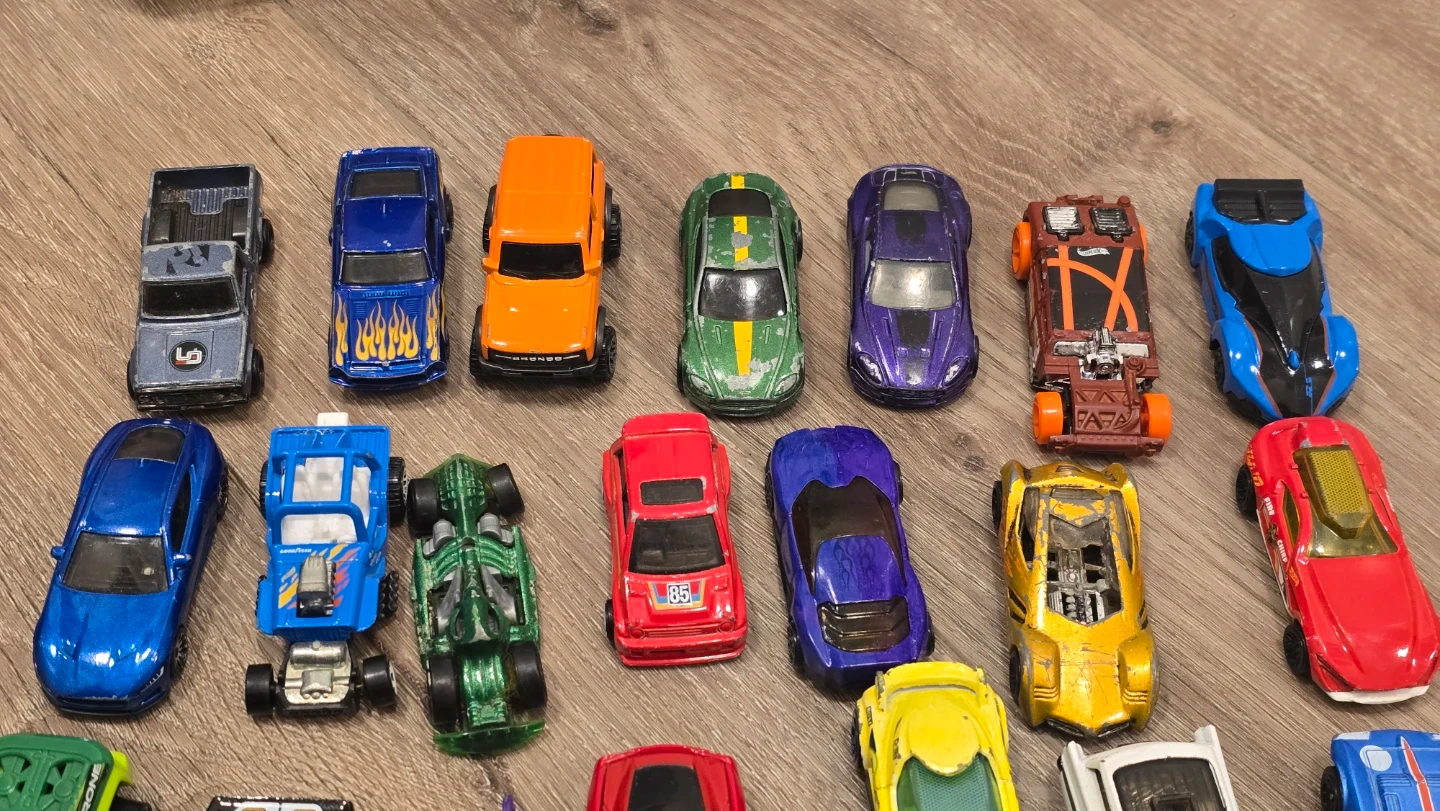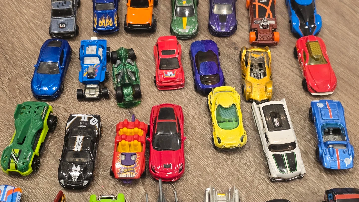Selling a bunch of toy cars! There's a variety of colours and styles, perfect for playtime or collecting. They're in good used condition and ready for a new home