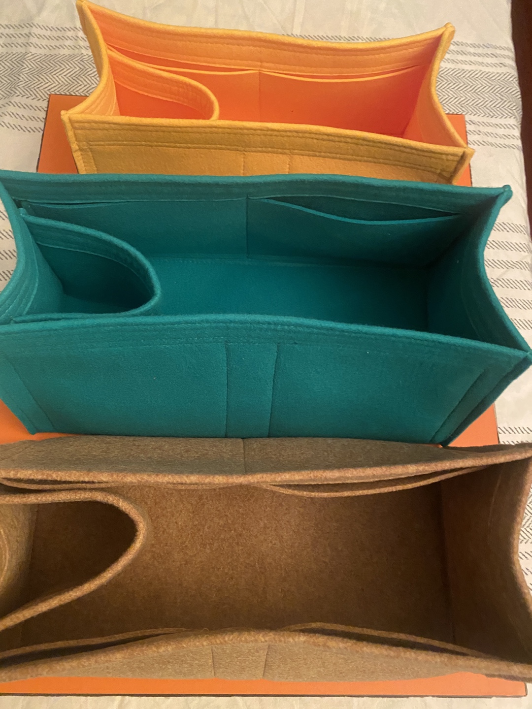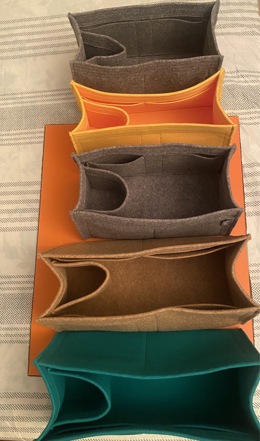 Six felt handbag organizers. Various colours. Great for organizing your purses. keep your nice bag clean and new.