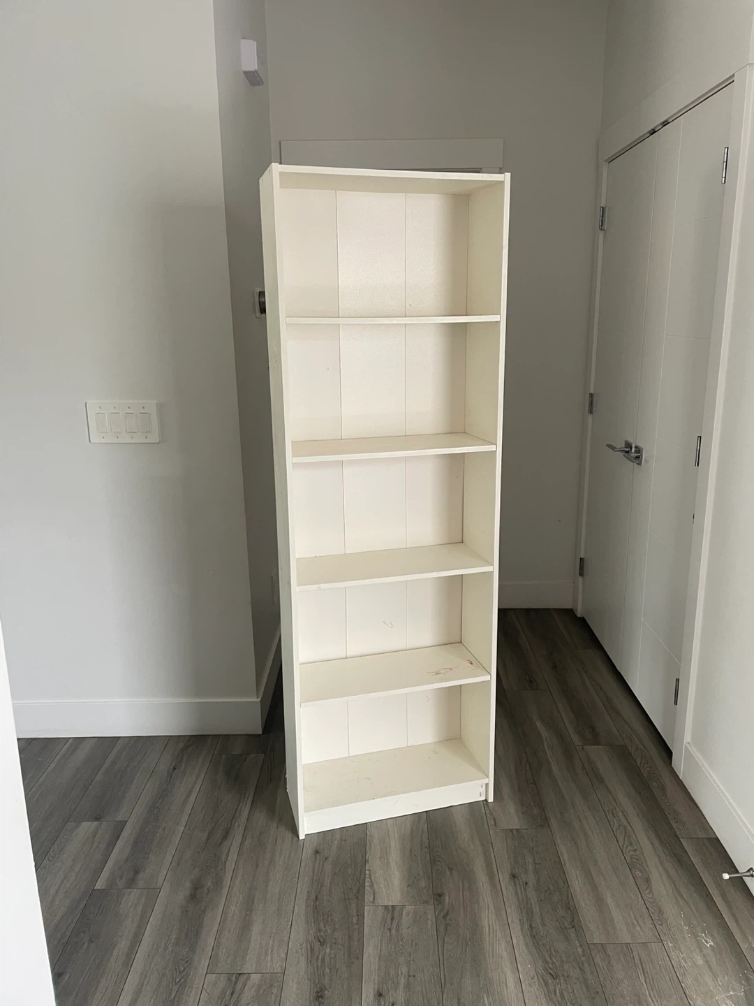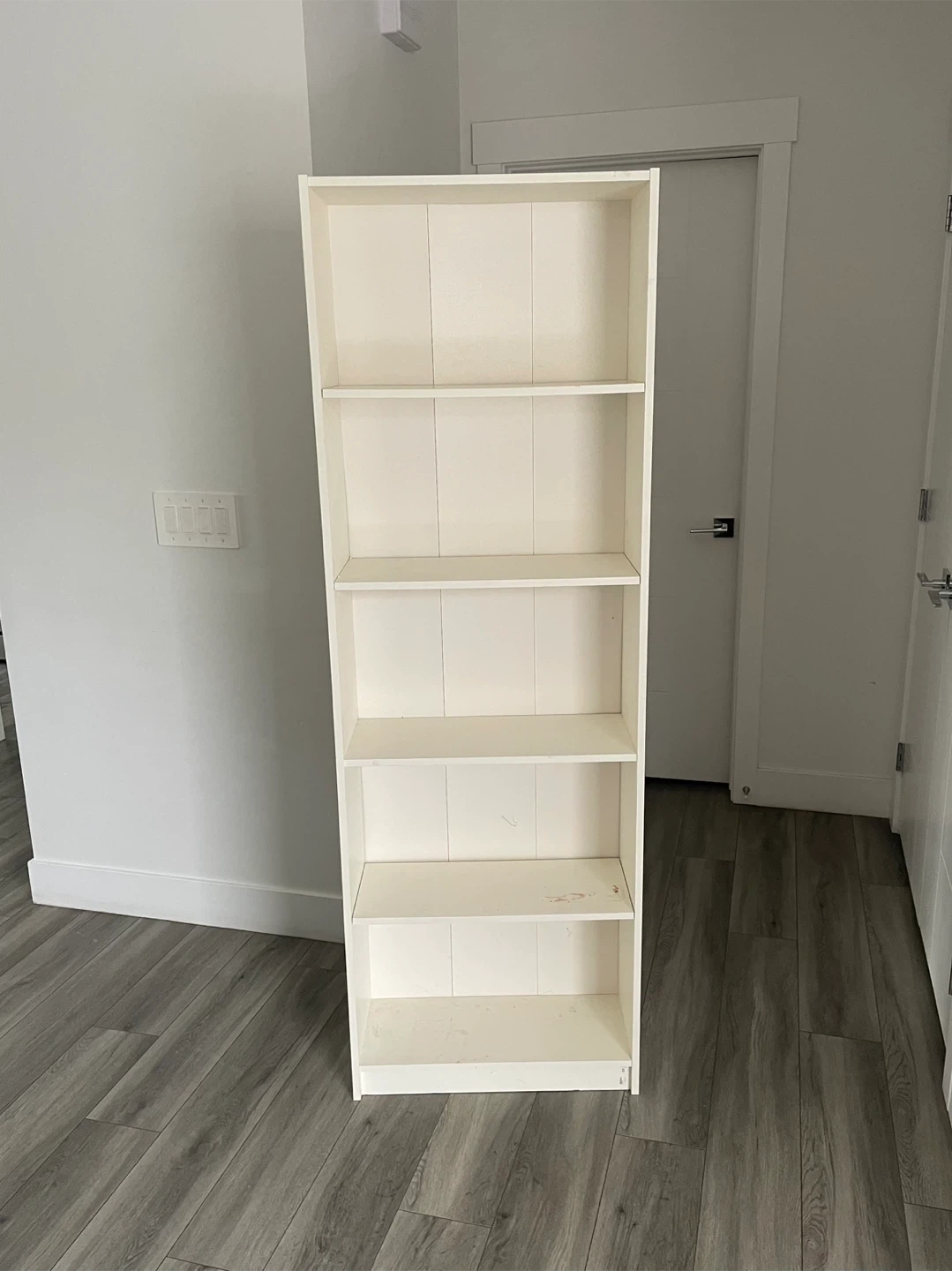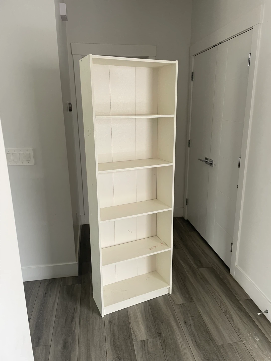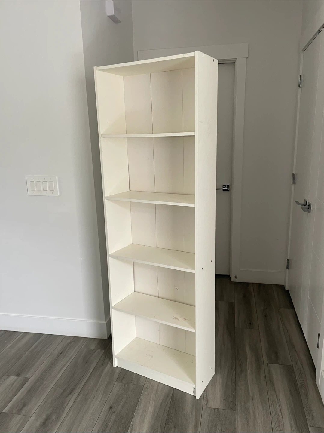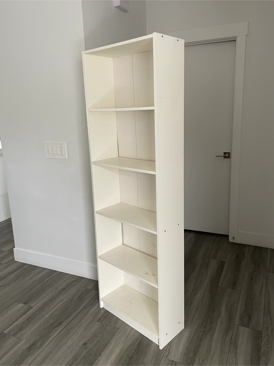White 5-Shelf Bookshelf. It's In Good Condition Has Some Wear And Great For Storing Books or Displaying Decor.
