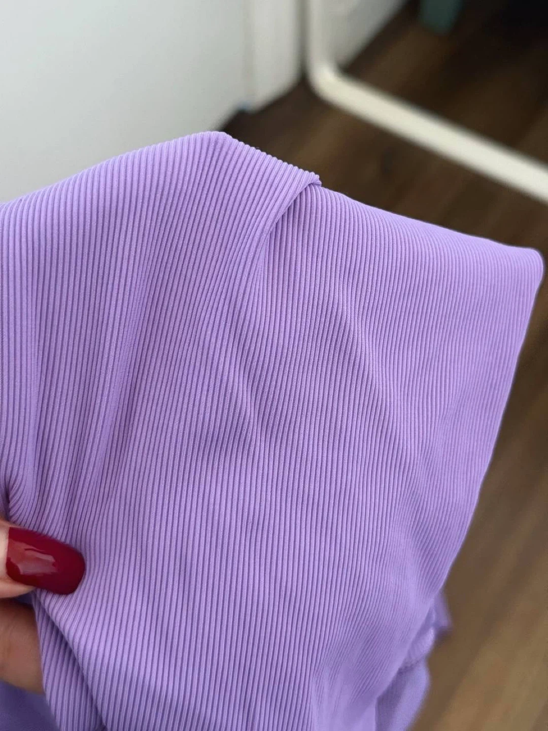 The fabric is super soft, stretchy, and very pleasant to the touch — ribbed texture that flatters the body beautifully.