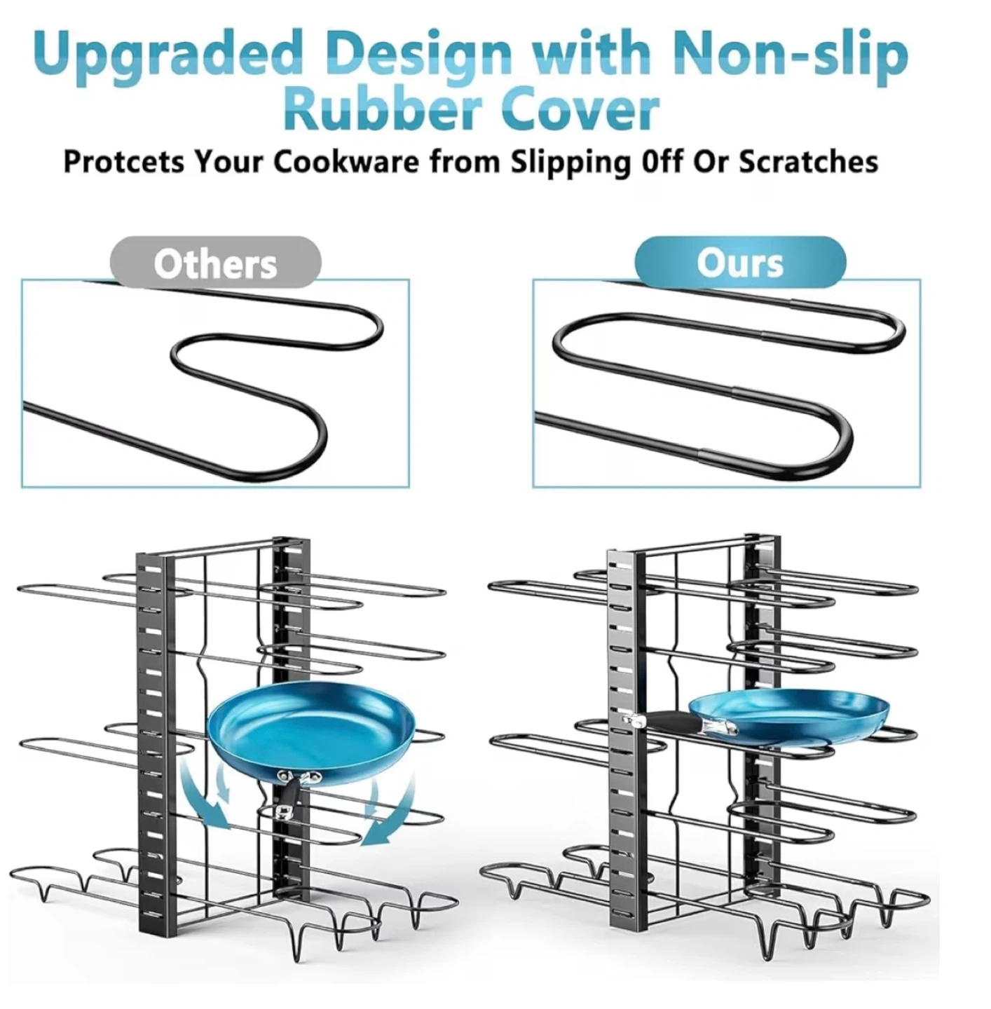 Excellent way to store your pots & pans. Efficient, easy to access, easy to see your cookware & its adjustable.