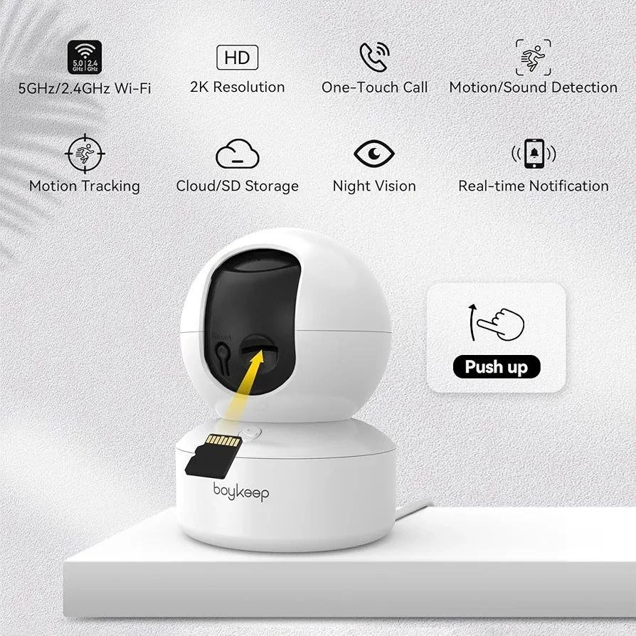 BoyKeep K30 Indoor Security Camera - 2K, 5G WiFi, 360° View