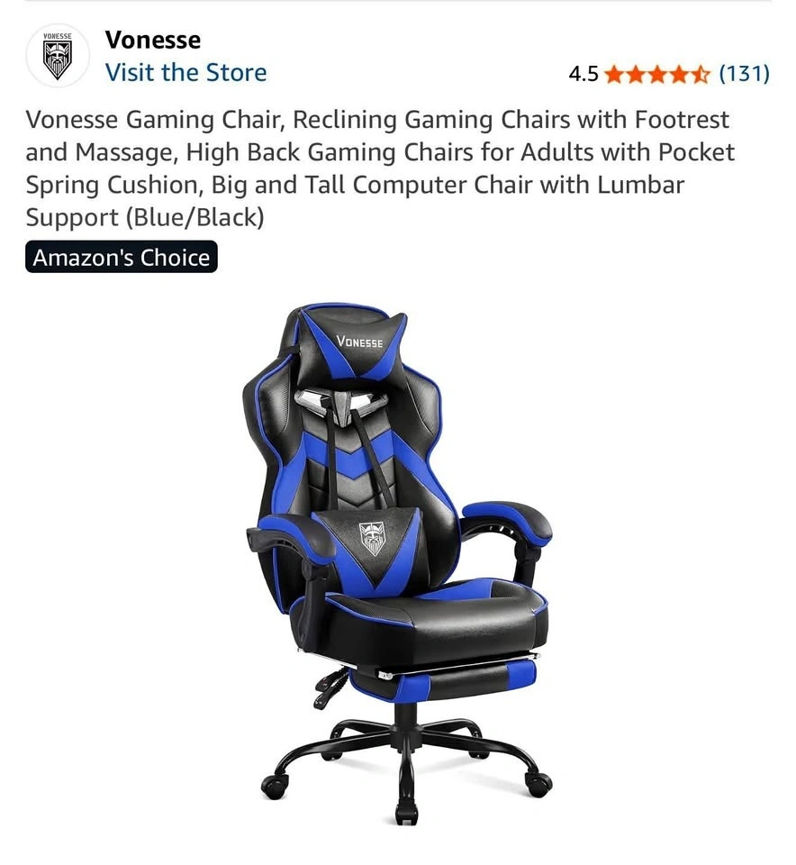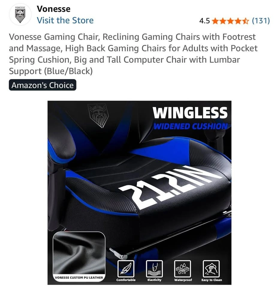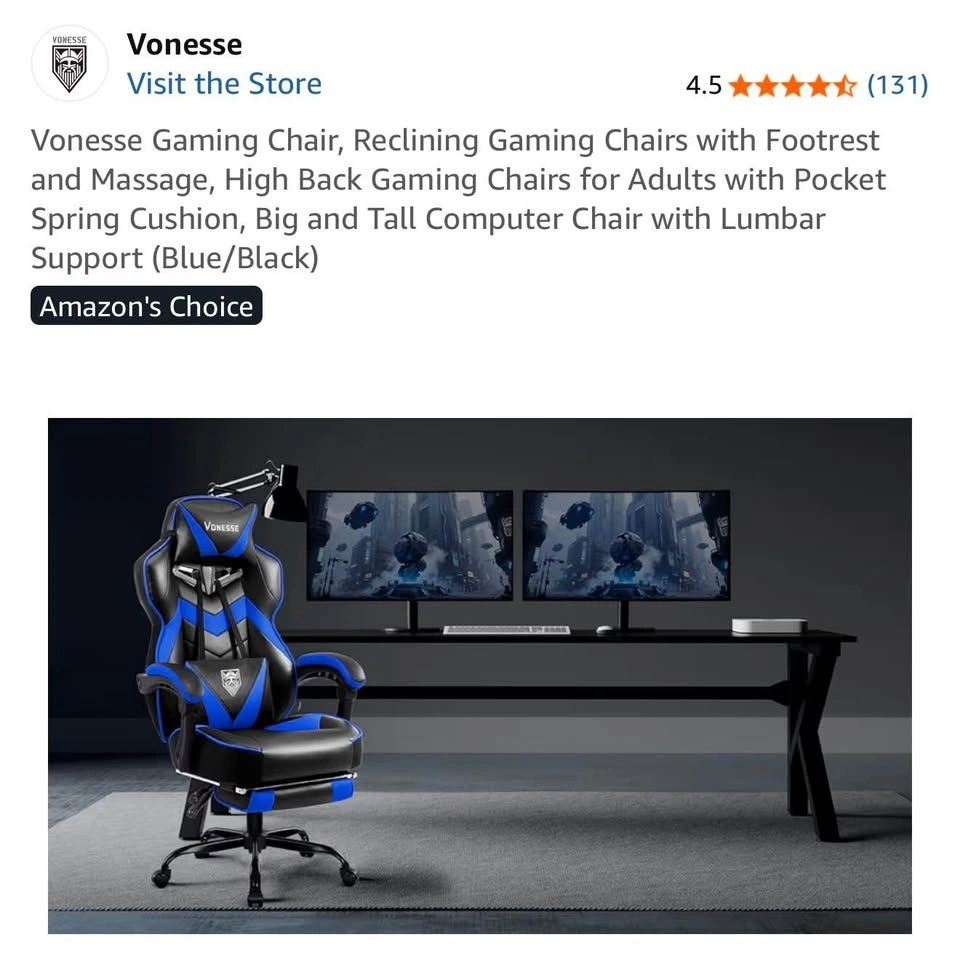 Selling a Voness Gaming Chair (Blue/Black) in brand new condition. Just assembled to check, never used. Very comfortable and stylish β perfect for gaming, office work, streaming or studying.