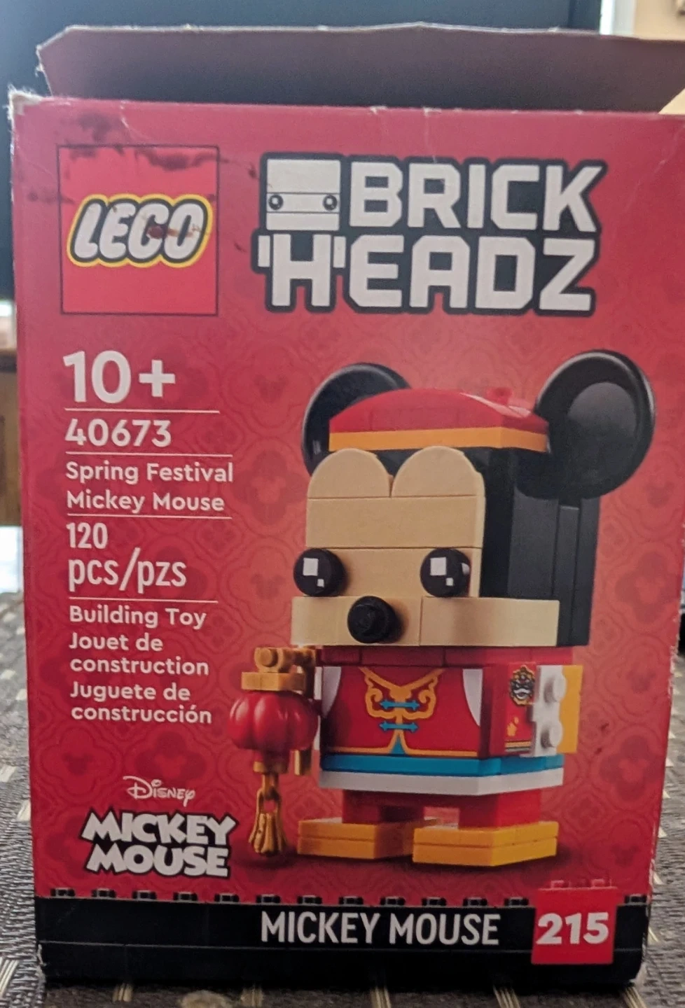 This is a LEGO BrickHeadz set featuring Spring Festival Mickey Mouse. It includes 120 pieces and is recommended for ages 10 and up. It's a fun building toy for Disney fans!