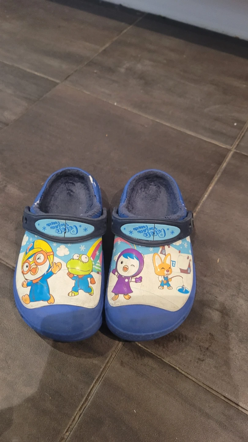 These adorable Crocs feature Pororo & Friends characters! They're blue and lined with soft material, perfect for keeping little feet cozy. Size is 10C/11
