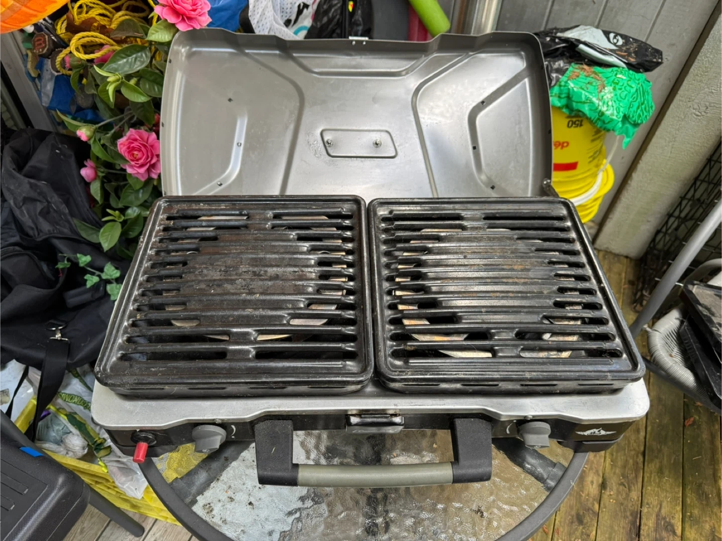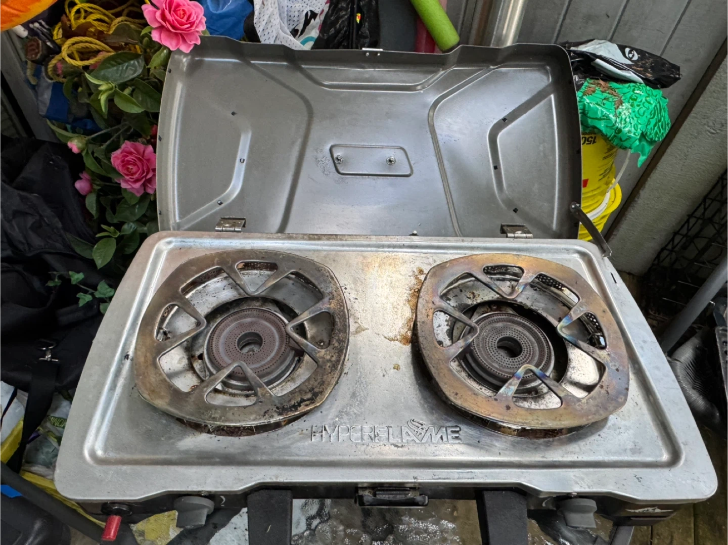 Coleman Hyperflame known for it’s wind resistant flame. It’s great for quick heat while efficient on fuel. Perfect for camping. Boils water in minutes. Only issue is the lid requires a fix. The rivets broke off but it can be fixed with new screws. Other than that the stove works great.