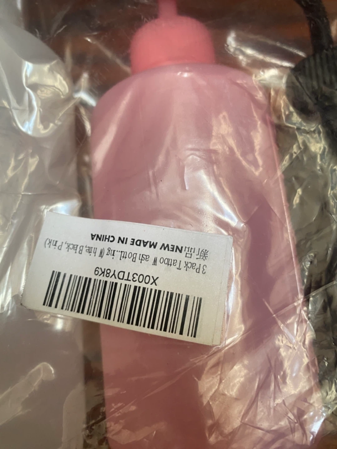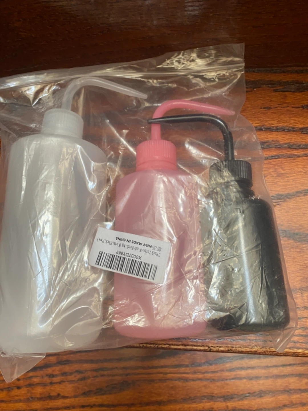 Comes with three tattoo ink applicator bottles in white, pink, and black. These bottles are great for precise ink application during tattoo sessions. They're made of a flexible plastic for easy squeezing. These are handy for tattoo artists needing reliable tools.