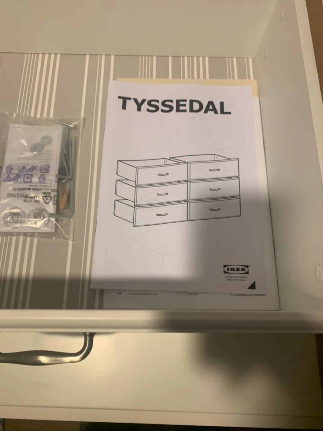 Buy & SellIKEA TYSSEDAL DresserIKEA TYSSEDAL Dresser$145White IKEA TYSSEDAL dresser with six drawers. Includes assembly manual and hardware. Drawer slides are installed.ConditionLike newWHERE TO MEETCheck LocationView MapSELLERSandyOld E York90 reviews1 chats·0 favorites·25 viewsSEND CHAT TO SELLERHi Sandy! I’m interested in your listing.Hi Sandy! I’m interested in your listing.Get the Karrot app to chatSign In to chat