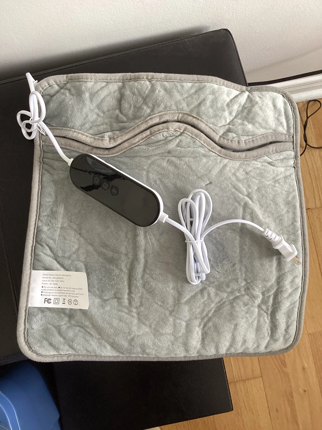 This is an unused soft flannel heating pad, perfect for back pain relief, or warming feet, hands, and shoulders. It's machine washable and has 6 temperature settings with a 30-120 minute auto-shutoff. Size is 40x40cm