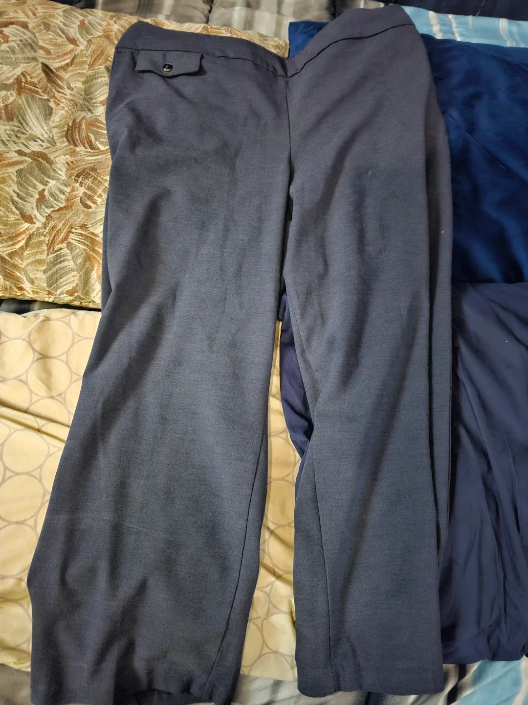 Rachel Zoe women's dress pants in a size 2X. These pants are blue and made from a polyester blend. They feature a button and zip closure.