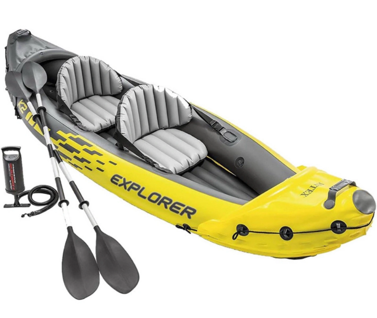 Explorer K2 Inflatable Kayak Set: Includes Deluxe 86in Aluminum Oars and High-Output Pump – SuperStrong PVC – Adjustable Seats with Backrest – 2-Person – 400lb Weight Capacity.