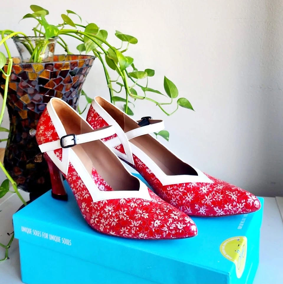 "Some people say it takes two to Tango, but John would say all it takes is the right pair of shoes. Gorgeous Twists that feature angular piping, a curved heel and a subtle toe ridge, these bold mary janes will inspire new moves in you. Twist your mind, trust your heart, get in your groove."