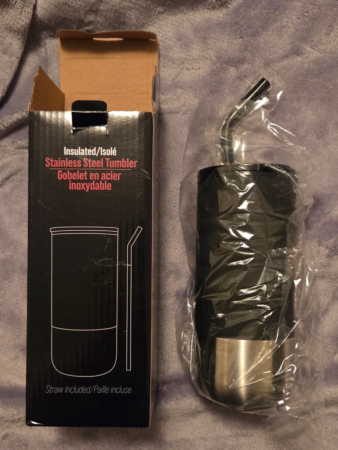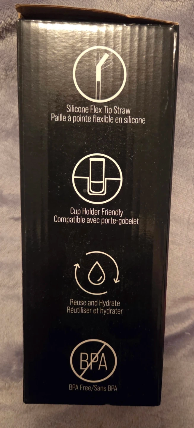 This is an insulated stainless steel tumbler. It's BPA-free and comes with a silicone flex tip straw. The tumbler is cup holder friendly and intended for reuse and hydration.