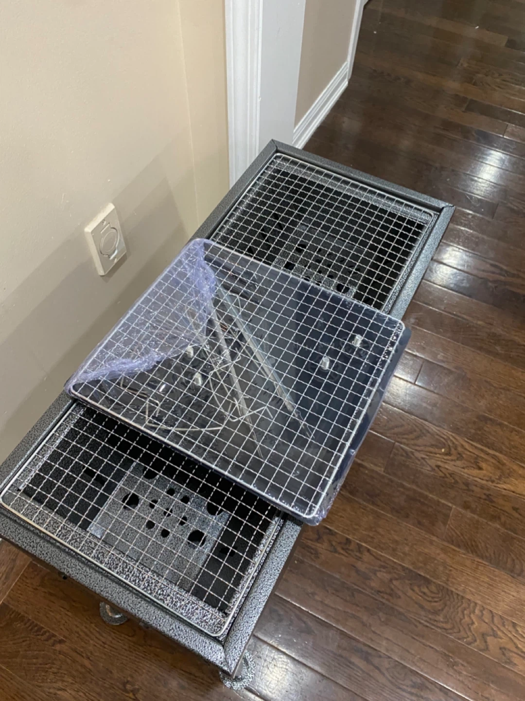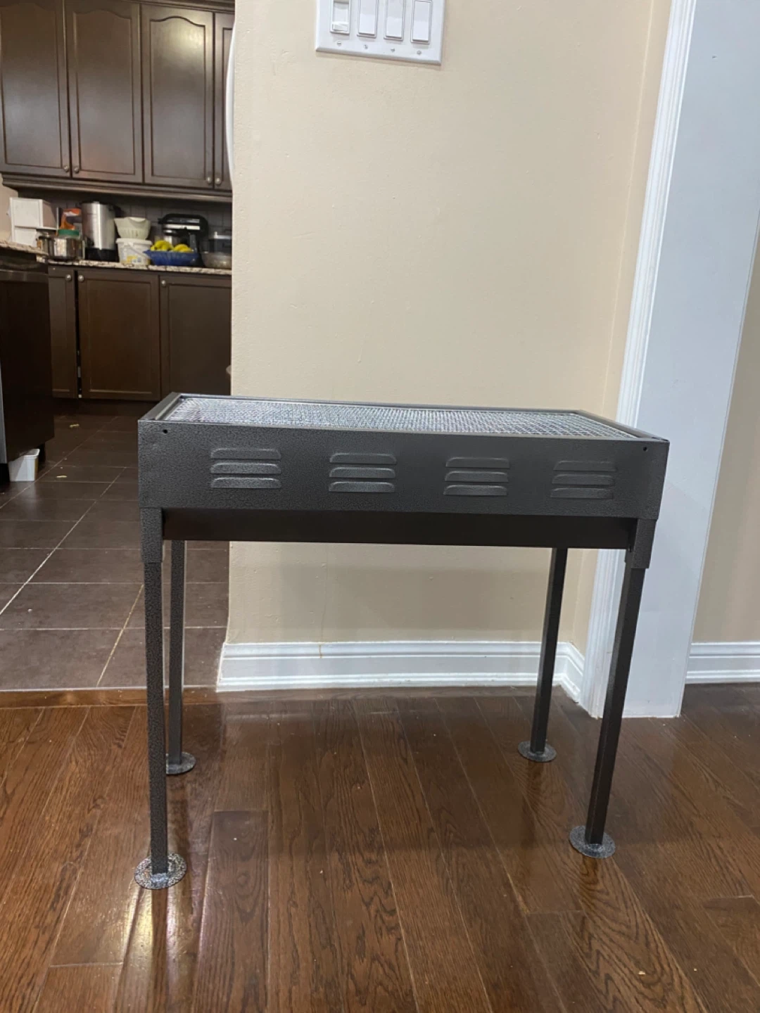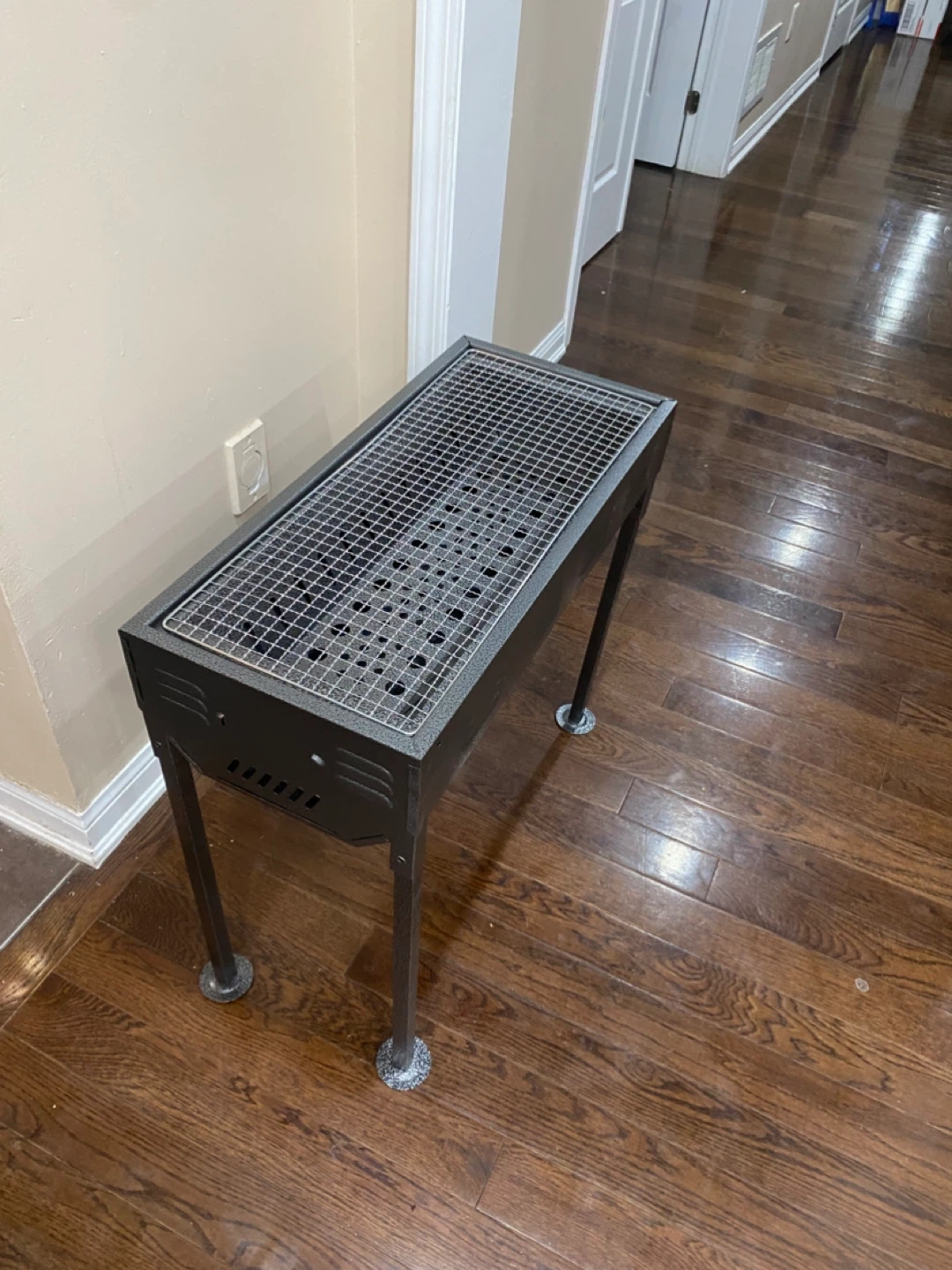This is a barbecue grill, perfect for outdoor cooking. It's made of durable metal with a sturdy grate. Easy to set up and use for your next backyard get-together!