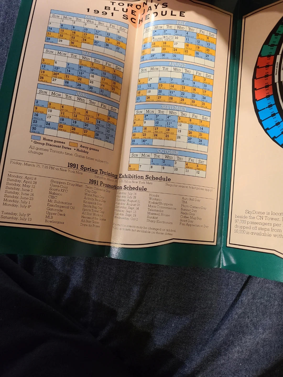 This vintage brochure details the Toronto Blue Jays 1991 schedule and information about the 1991 All-Star Game. It includes game dates, group discount info, and a map of the Skydome. A great piece of baseball memorabilia!