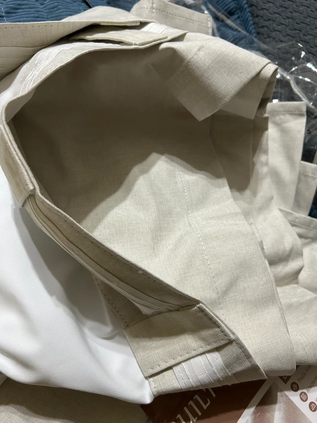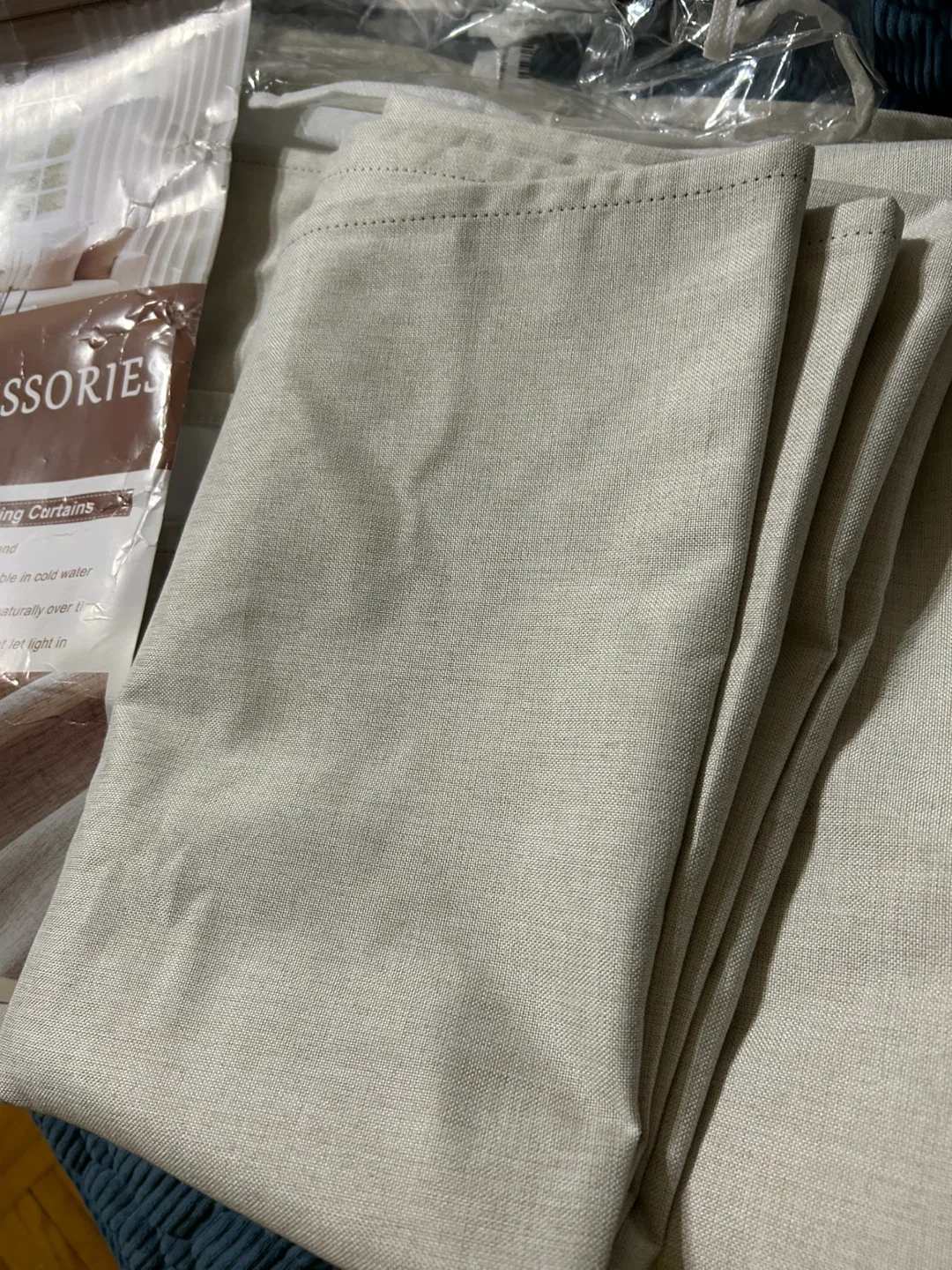 These new light filtering curtains are made from a thick linen blend with a white back side. They are machine washable in cold water and wrinkles fall out naturally over time. Privacy curtains that let in light. Measurements is (52W x 96L)inch (2 Panels)