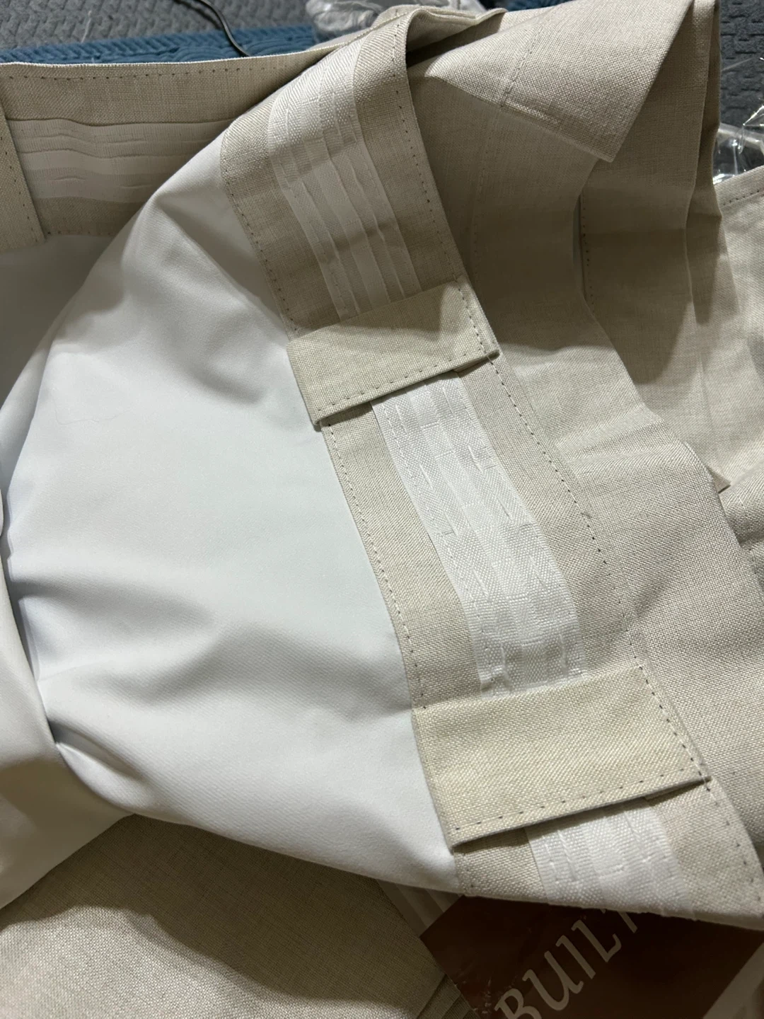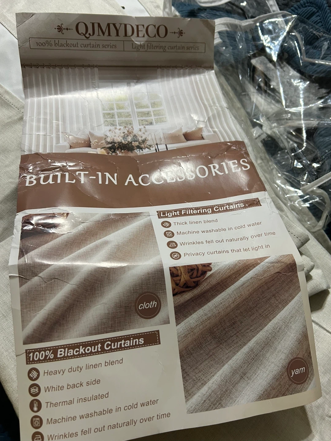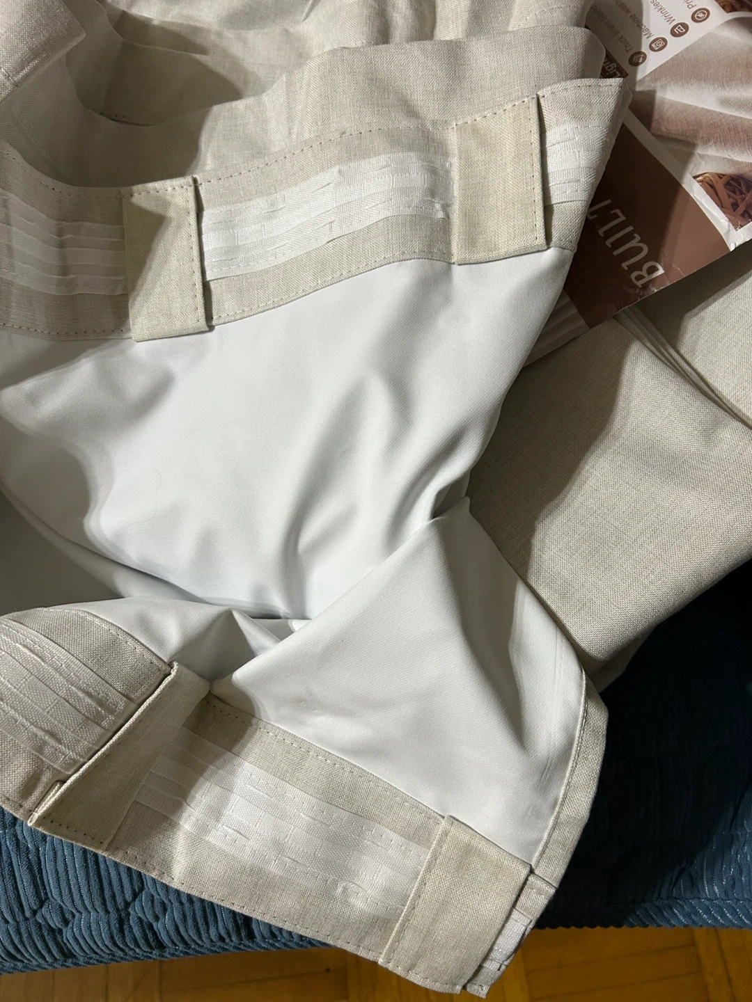 These new light filtering curtains are made from a thick linen blend with a white back side. They are machine washable in cold water and wrinkles fall out naturally over time. Privacy curtains that let in light. Measurements is (52W x 96L)inch (2 Panels)