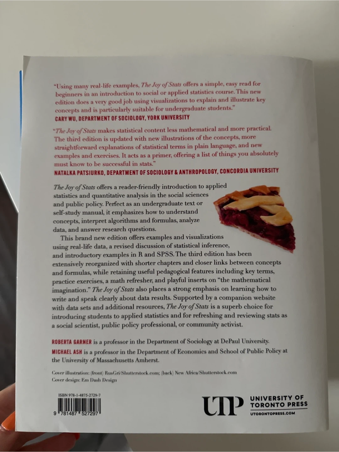 This is the third edition of "The Joy of Stats" by Roberta Garner and Michael Ash. It covers applied statistics and quantitative analysis in the social sciences. Includes information on R and SPSS.
