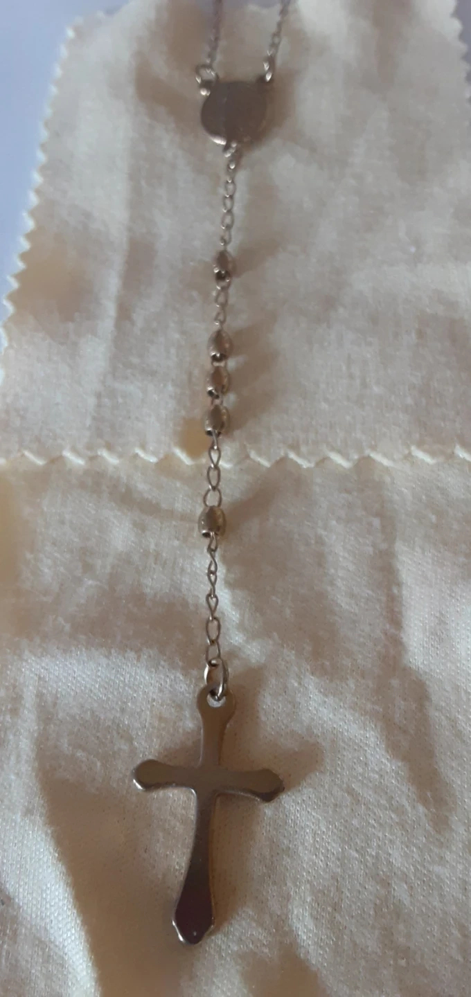 Silver Tone Rosary Necklace