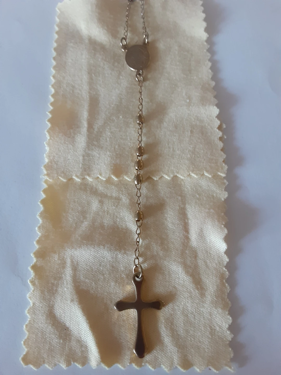 Silver Tone Rosary Necklace