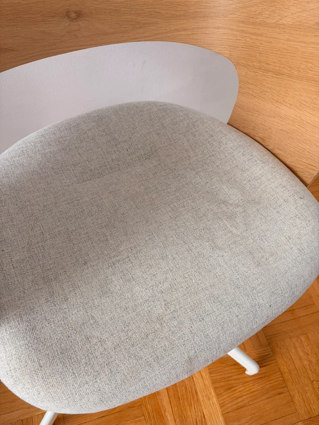 Base: Some minor paint chips on the white metal legs (typical from hitting a desk/vacuum), but nothing major.