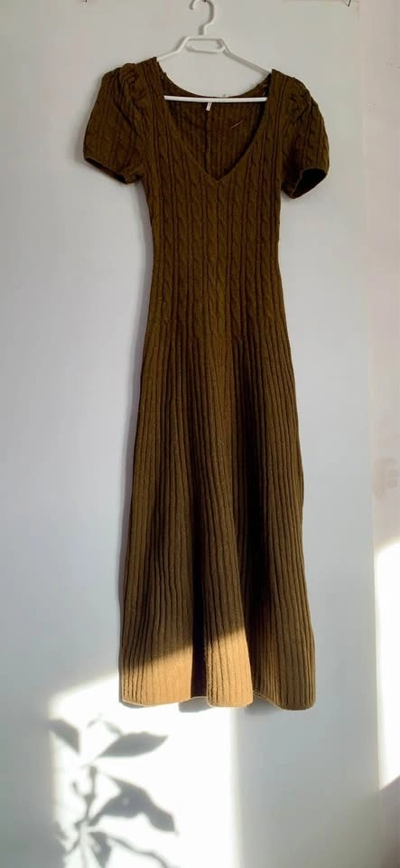 Brand new, unworn Free People cable knit sweater dress in a pretty rusty brown shade. It has a sweetheart neckline and cap sleeves. It's designed to hug the body with lots of stretch. Length is 50", pit to pit is 14", and the waist is 13"-17" with plenty of comfortable stretch.