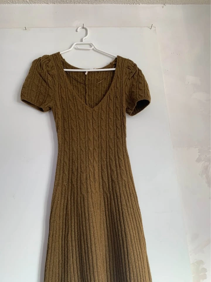 Brand new, unworn Free People cable knit sweater dress in a pretty rusty brown shade. It has a sweetheart neckline and cap sleeves. It's designed to hug the body with lots of stretch. Length is 50", pit to pit is 14", and the waist is 13"-17" with plenty of comfortable stretch.