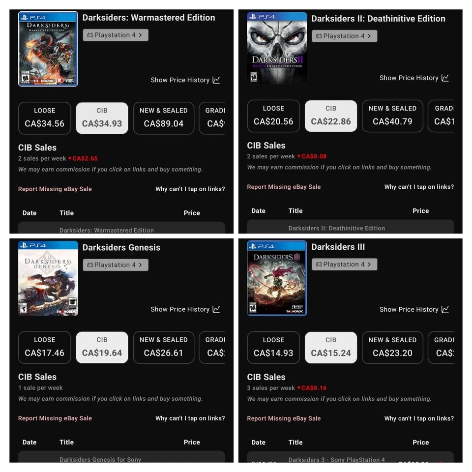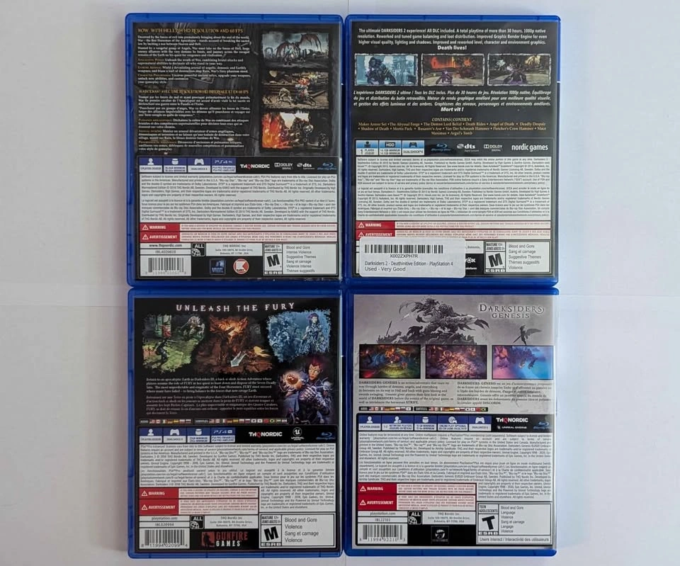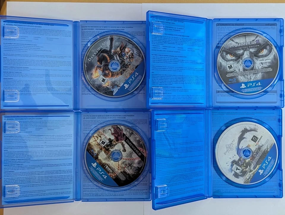 Buy & SellDarksiders 1-3 + Genesis PlayStation 4Darksiders 1-3 + Genesis PlayStation 4$70In like new condition with no scratches on the discs. $70 for all. Pick up in Radisson Heights SE. Check out my other listings for more video games.WHERE TO MEETCheck LocationView MapSELLERverifiedCodyRadisson Heights650 reviews0 chats·1 favorites·2 viewsSEND CHAT TO SELLERHi Cody! I’m interested in your listing.Hi Cody! I’m interested in your listing.Get the Karrot app to chatSign In to chat
