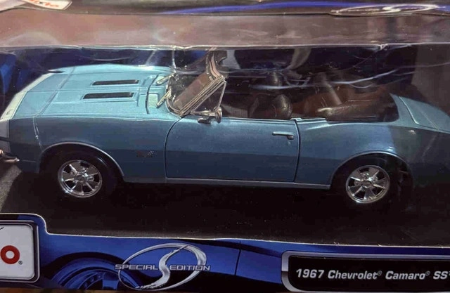 I'm offering a 1:18 scale model of the 1967 Chevrolet Camaro SS396 convertible, a special edition diecast collectible. The model is in new condition, still in its original packaging, making it a pristine addition to any car enthusiast's collection. It's a detailed replica that captures the essence of the classic Camaro. Specifications: * Scale: 1:18 * Model: 1967 Chevrolet Camaro SS396 Convertible * Edition: Special Edition * Condition: New in box. Let me know if you're interested!