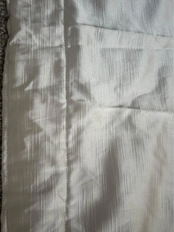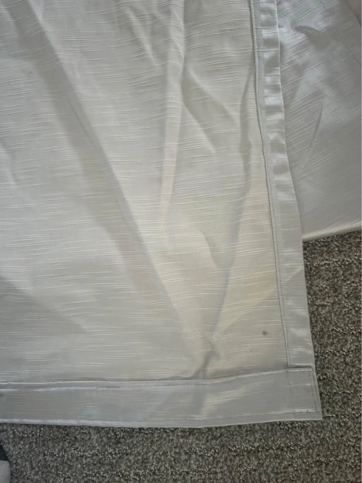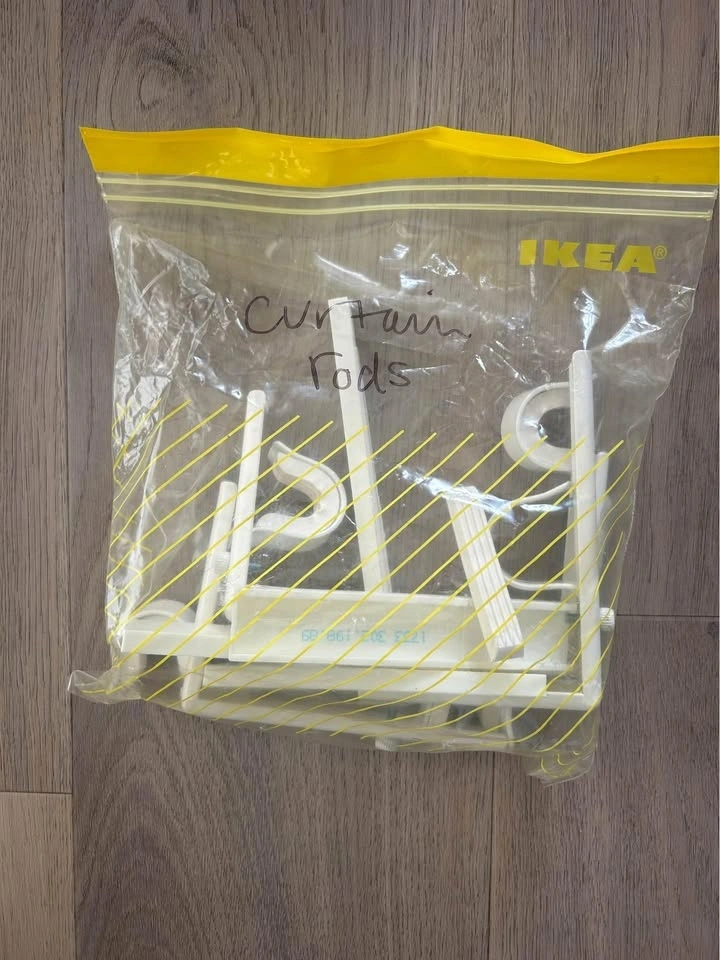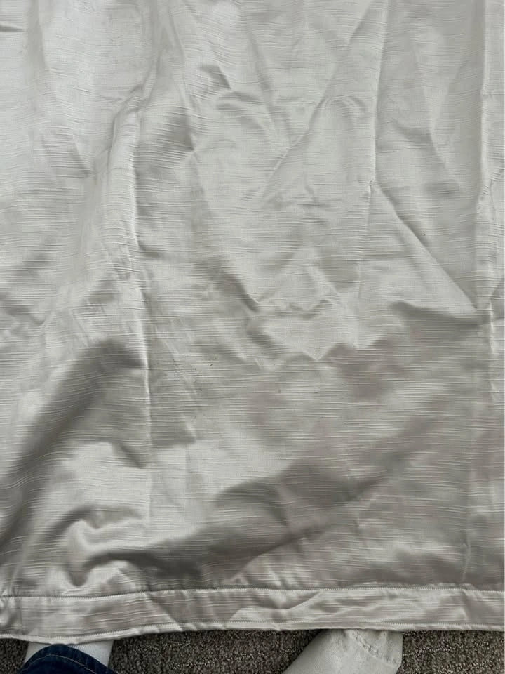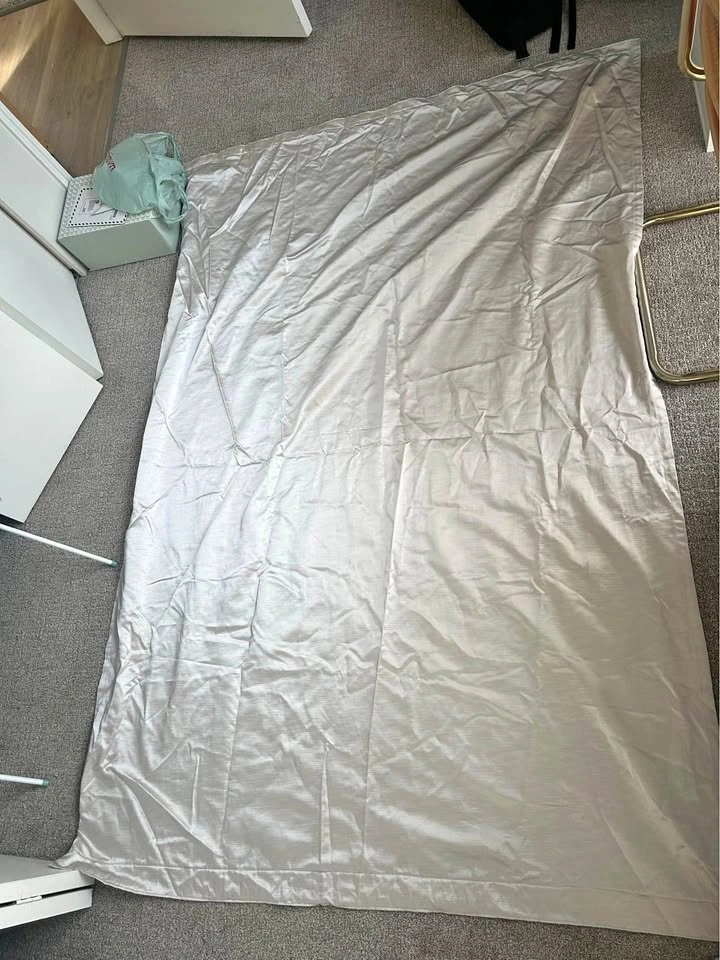 Selling these curtains I made myself. They measure 140 cm x 210 cm. The opening for the rod is 5.5cm. There are a few faint marks on one that will probably come off in the wash but are barely noticeable (see pics). The fabric is a gorgeous metallic colour that looks silver with a warm undertone. It looks best in person. I made them a few years ago and had them in storage (vacuum sealed so they’re wrinkly in the photo but you can steam them). I cannot remember what the fabric type is so best to wash on delicate or hand wash cycle and hang to dry. Comes with 3x Ikea brackets but NOT the pole. Pickup in River District.