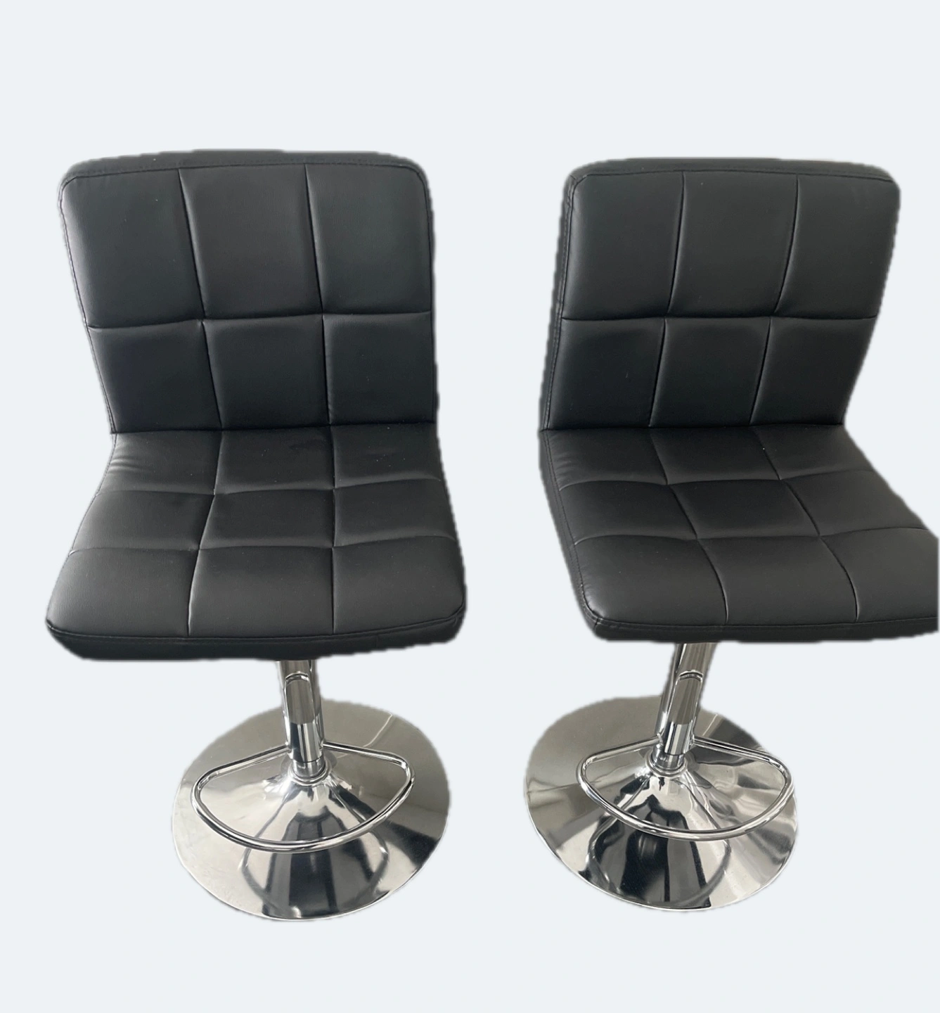 For Living Two black bar stools bought from Canadian Tire. Not Amazon quality. Modern design, chrome base. PU leather upholstery. Adjustable height.
