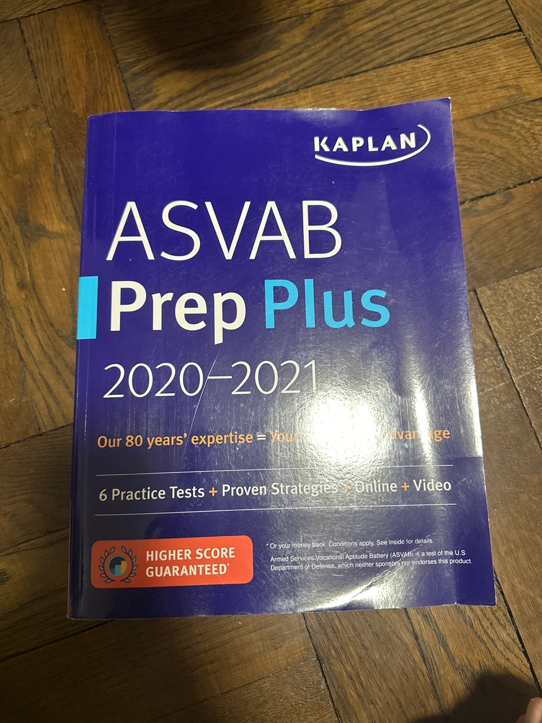 This book is for the ASVAB test. It includes 6 practice tests, proven strategies, and online + video resources. Higher score guaranteed! Some tears in the book but not enough to ruin it