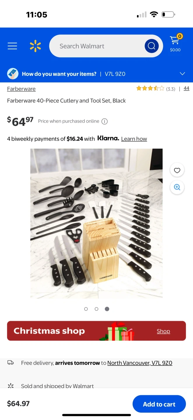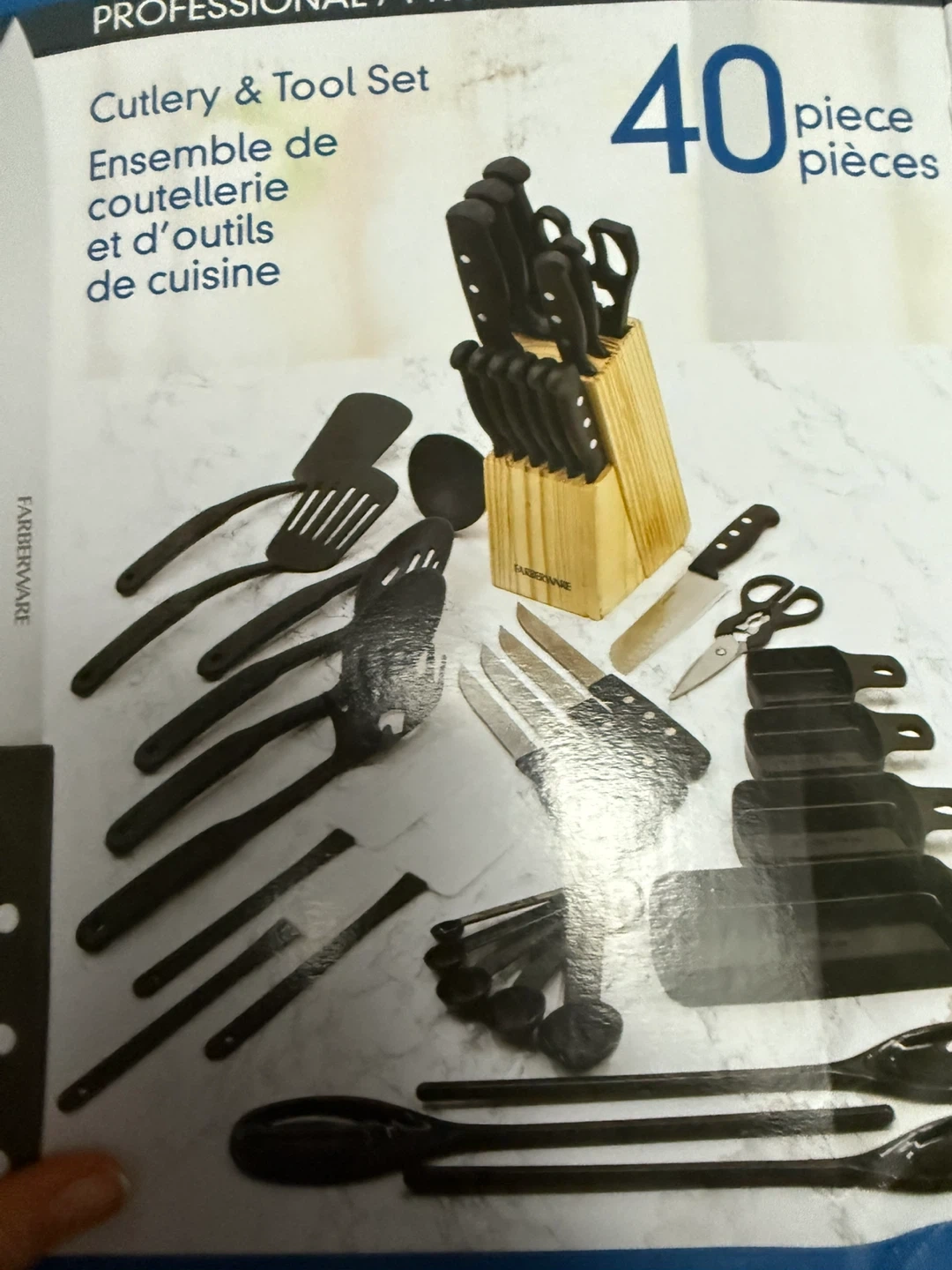 Selling a Farberware 40-Piece Cutlery and Tool Set in black. This set is perfect for any kitchen and includes a variety of knives, utensils, and tools. Originally bought for $64.97!